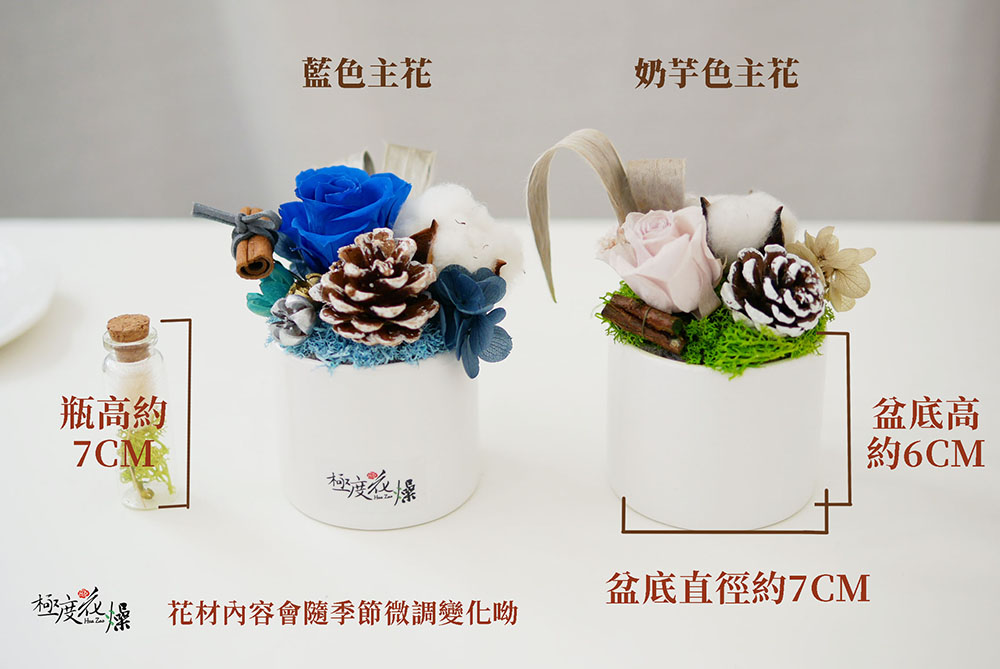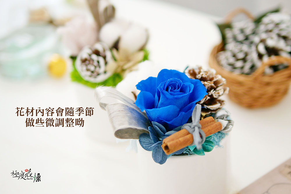 ● 花材的持久度取決於主人的照顧狀況,另外擺放時間越久,些許退色是正常的