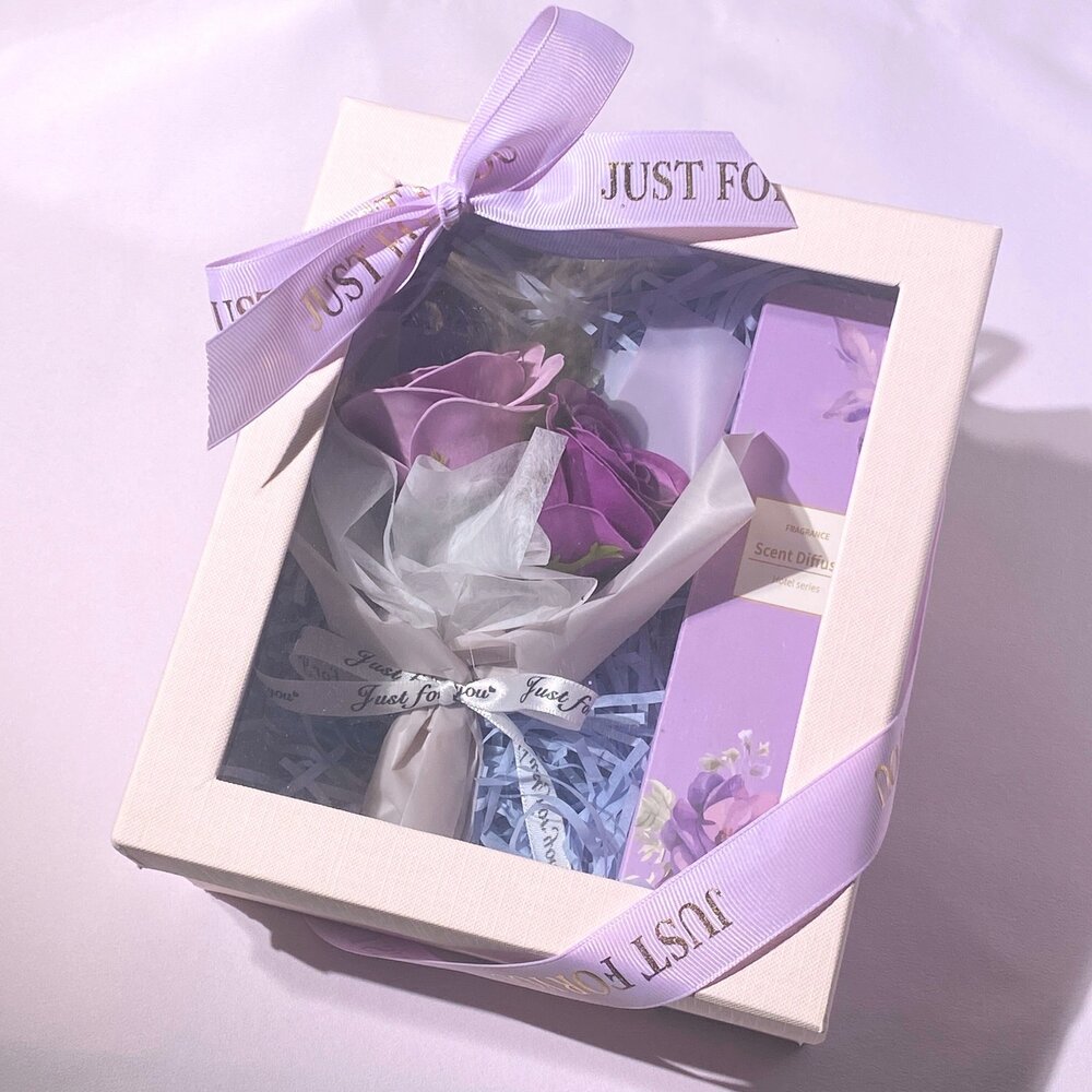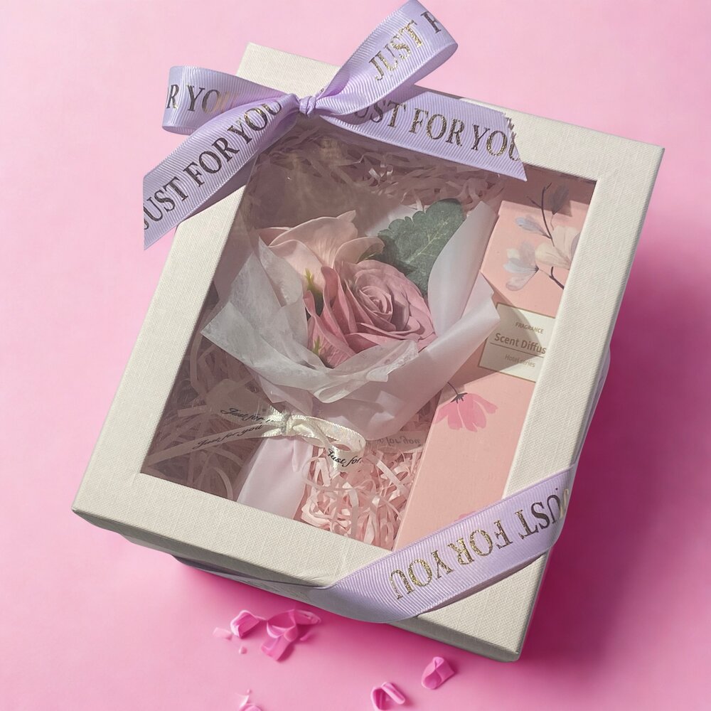 內含擴香芬、擴香棒、香皂花束,搭配乾燥花飾品與高質感包裝,開盒即感受幸福。