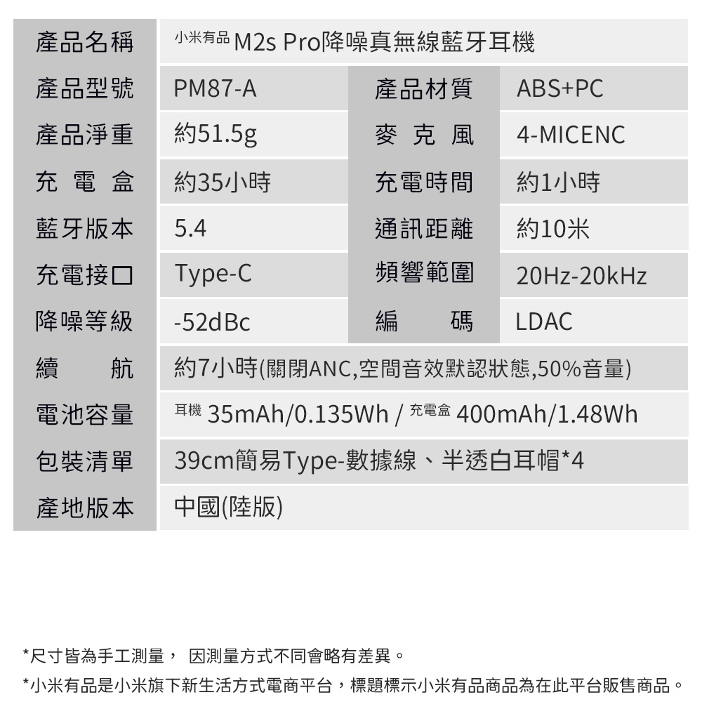 小米有品 降噪真無線藍牙耳機 M2sPro 藍牙耳機 抗噪 降噪 無線耳機