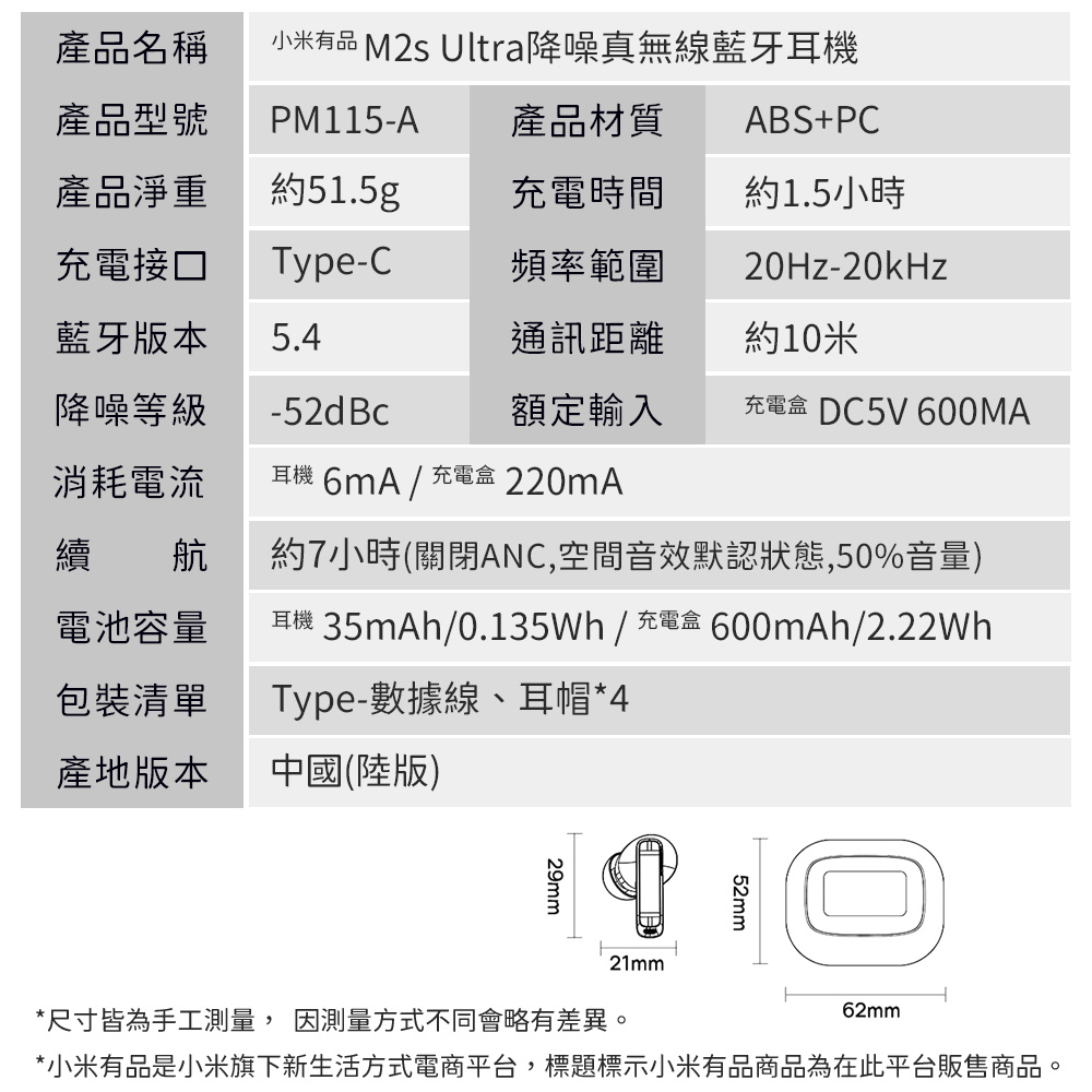 小米有品 降噪真無線藍牙耳機 M2sUltra 藍牙耳機 抗噪 降噪 無線耳機