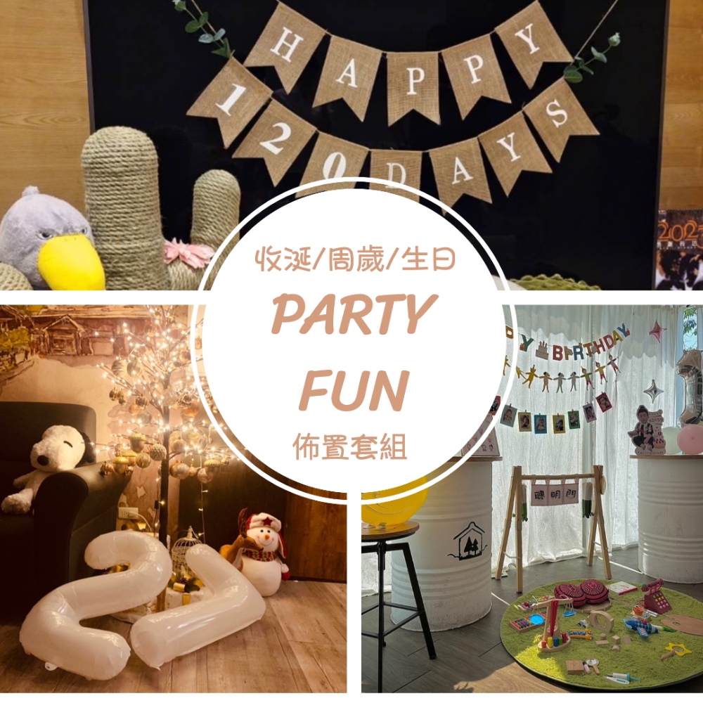 PartyFUN 提供《 生日 / 收涎 / 週年紀念日 / 滿月 / 百日宴 》派對佈置用品