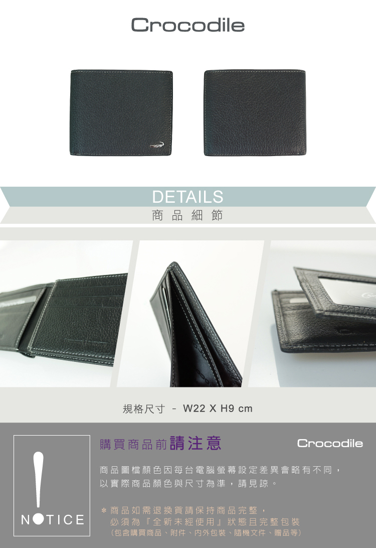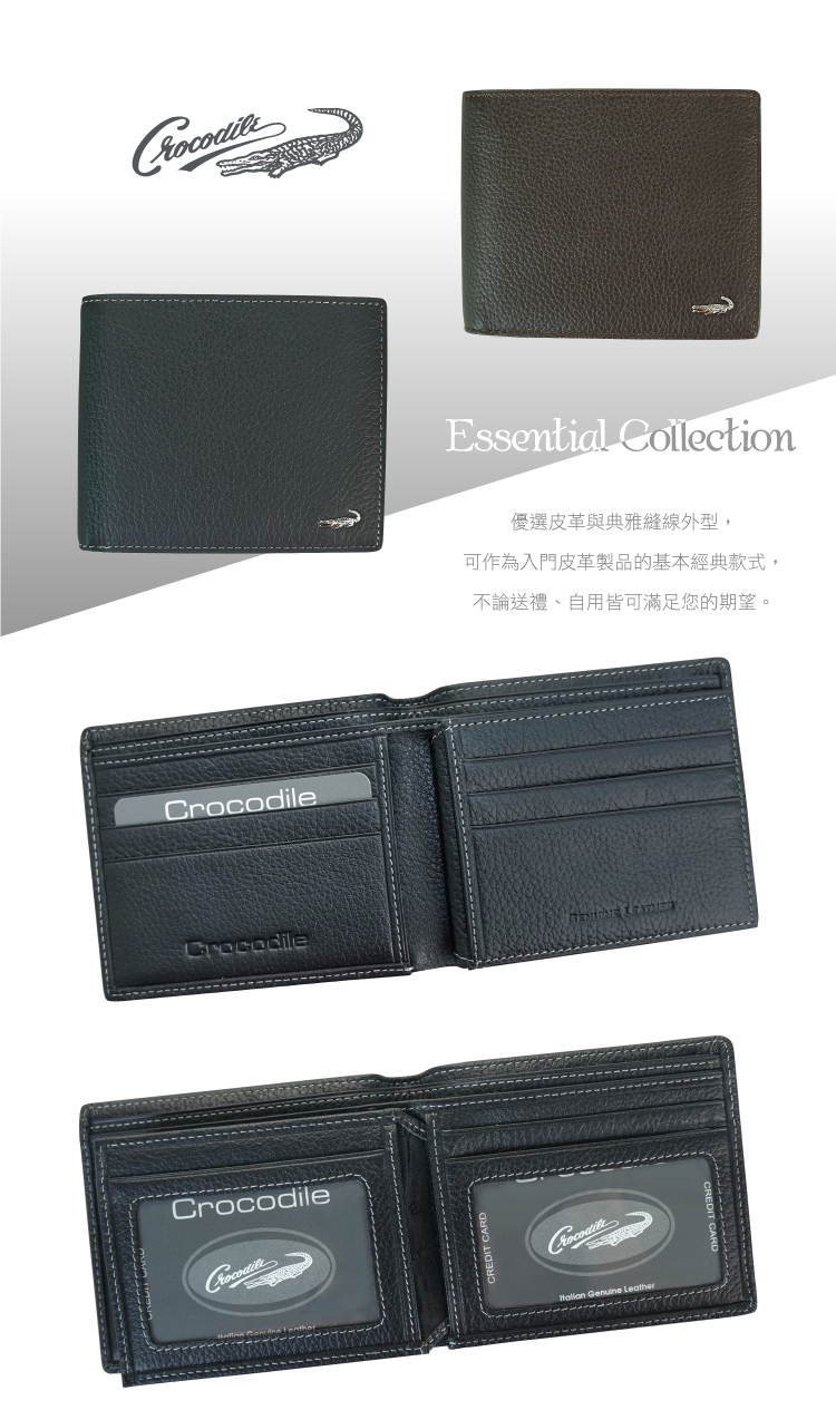 【Crocodile】鱷魚皮件 真皮短夾 11卡 中翻窗格 男夾 經典系列-0203-1102-黑咖兩色男夾錢包 經典系列