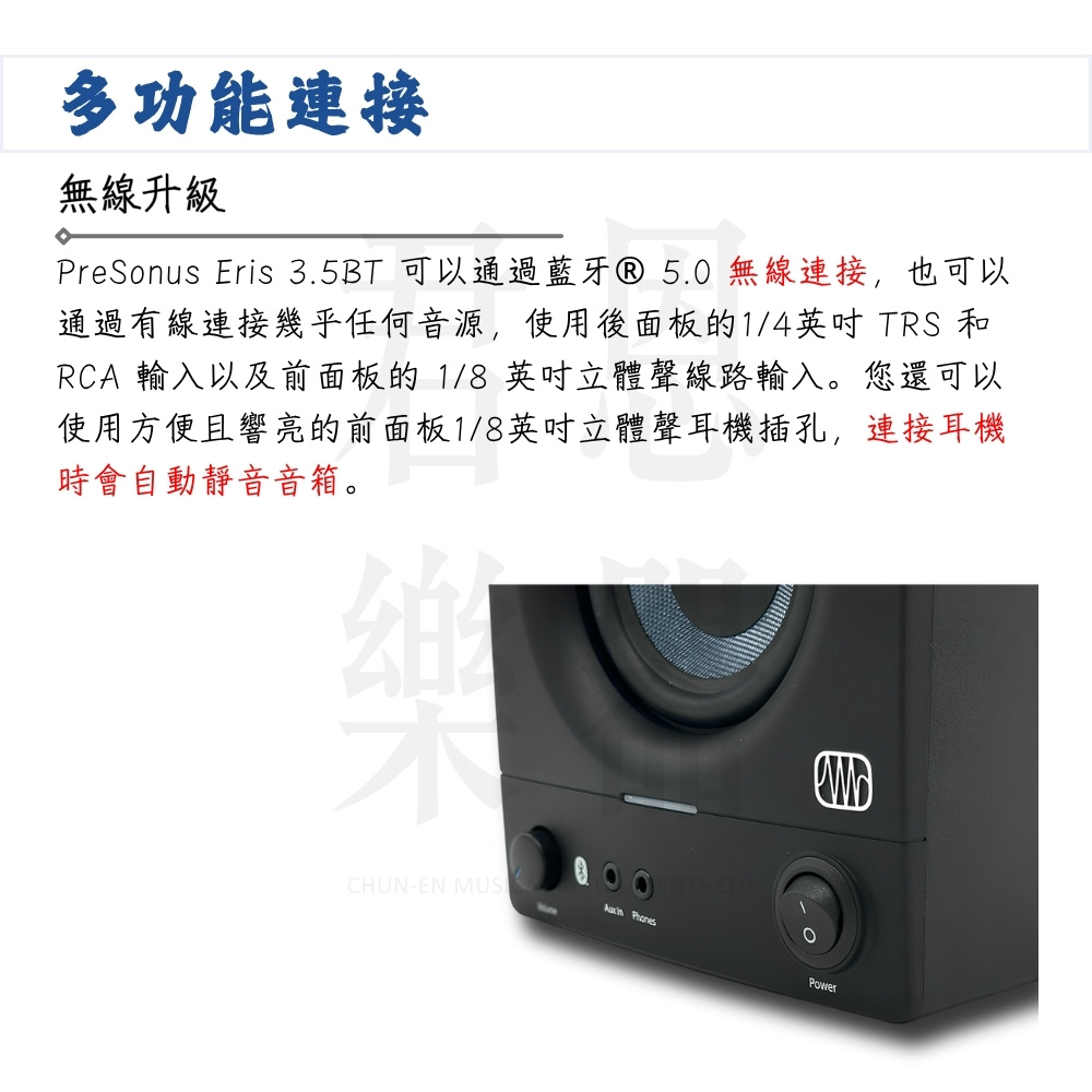 【Presonus】Eris 3.5BT 2nd 第二代藍芽監聽喇叭 黑色款|極致聲學(E3.5 家用喇叭 錄音室喇叭 電腦喇叭)
