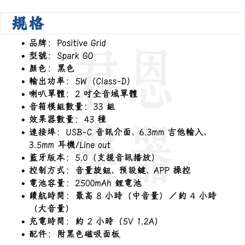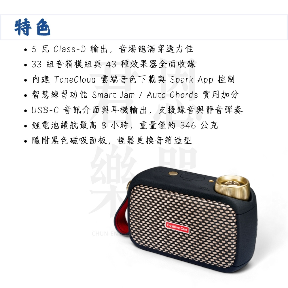 【Positive Grid】Spark GO 5瓦藍芽吉他音箱 黑色款|讓音樂更簡單(效果器 貝斯 音響 播客 直播)