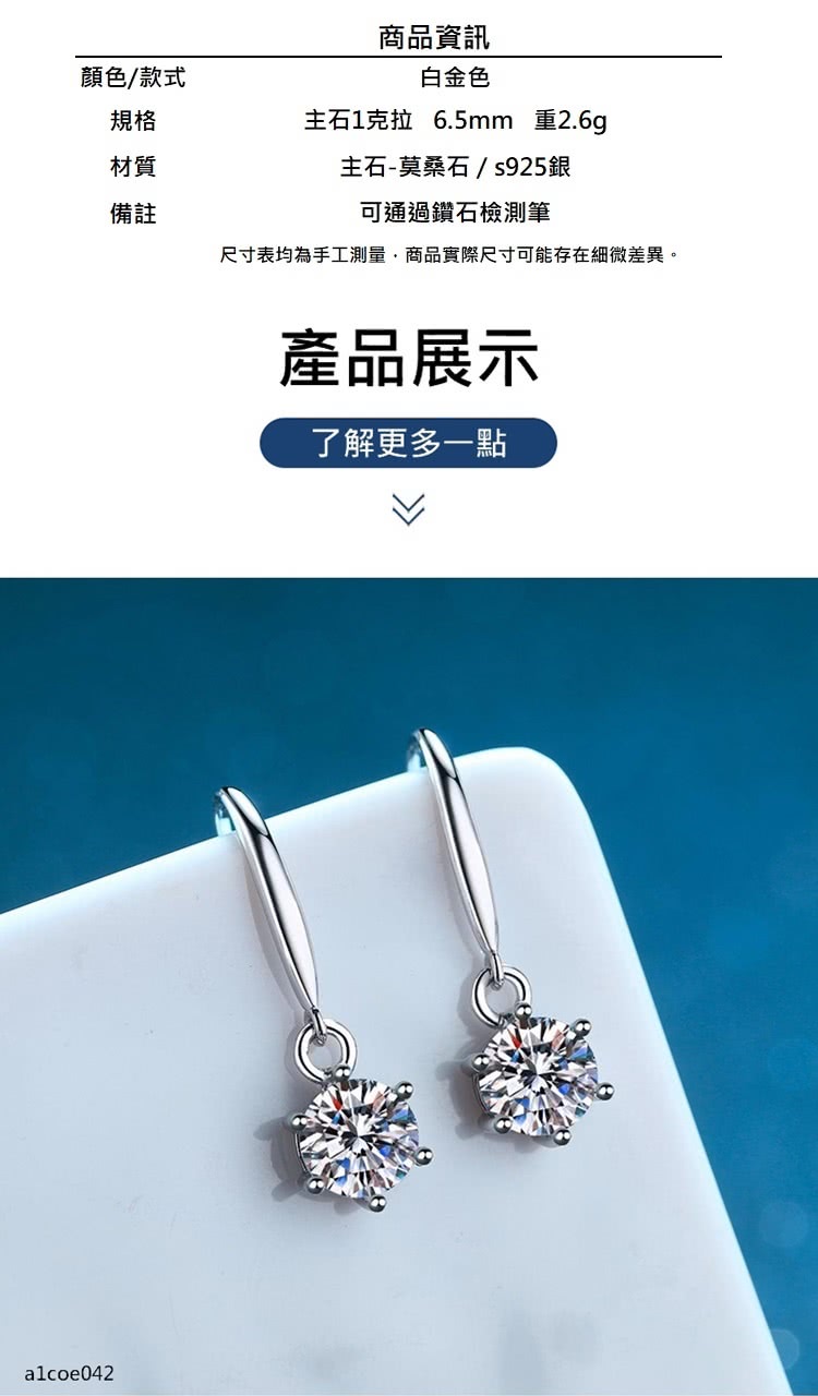 【巴黎精品】現貨+預購 莫桑鑽石耳環925純銀耳環耳針銀飾品-1克拉女飾品配件情人節禮物a1co45