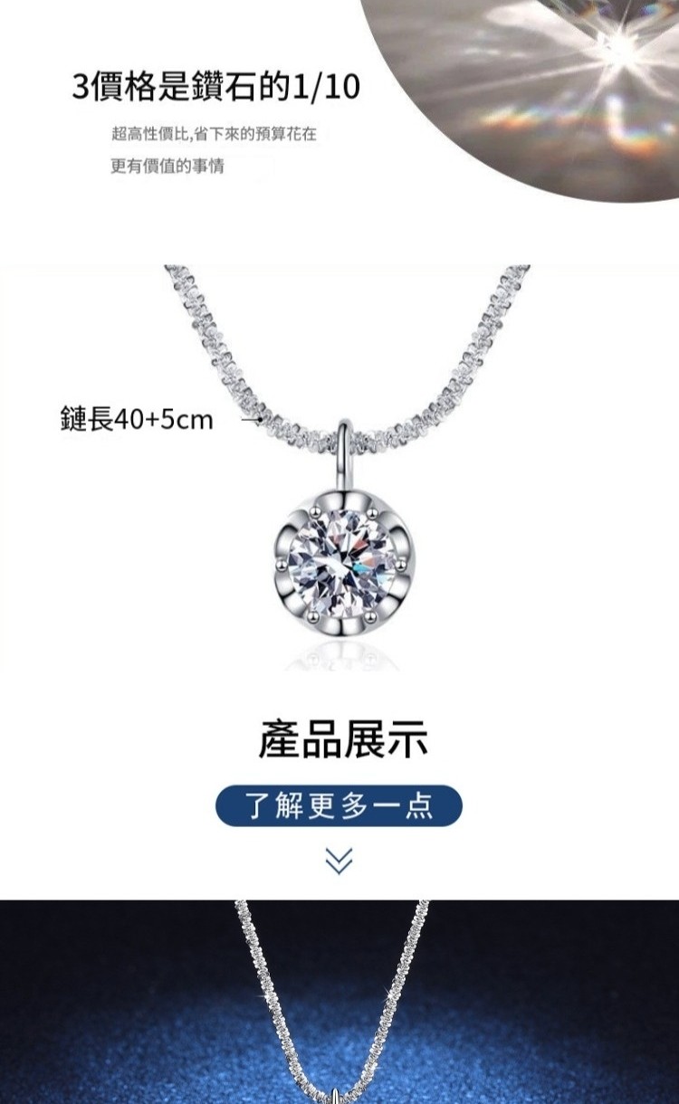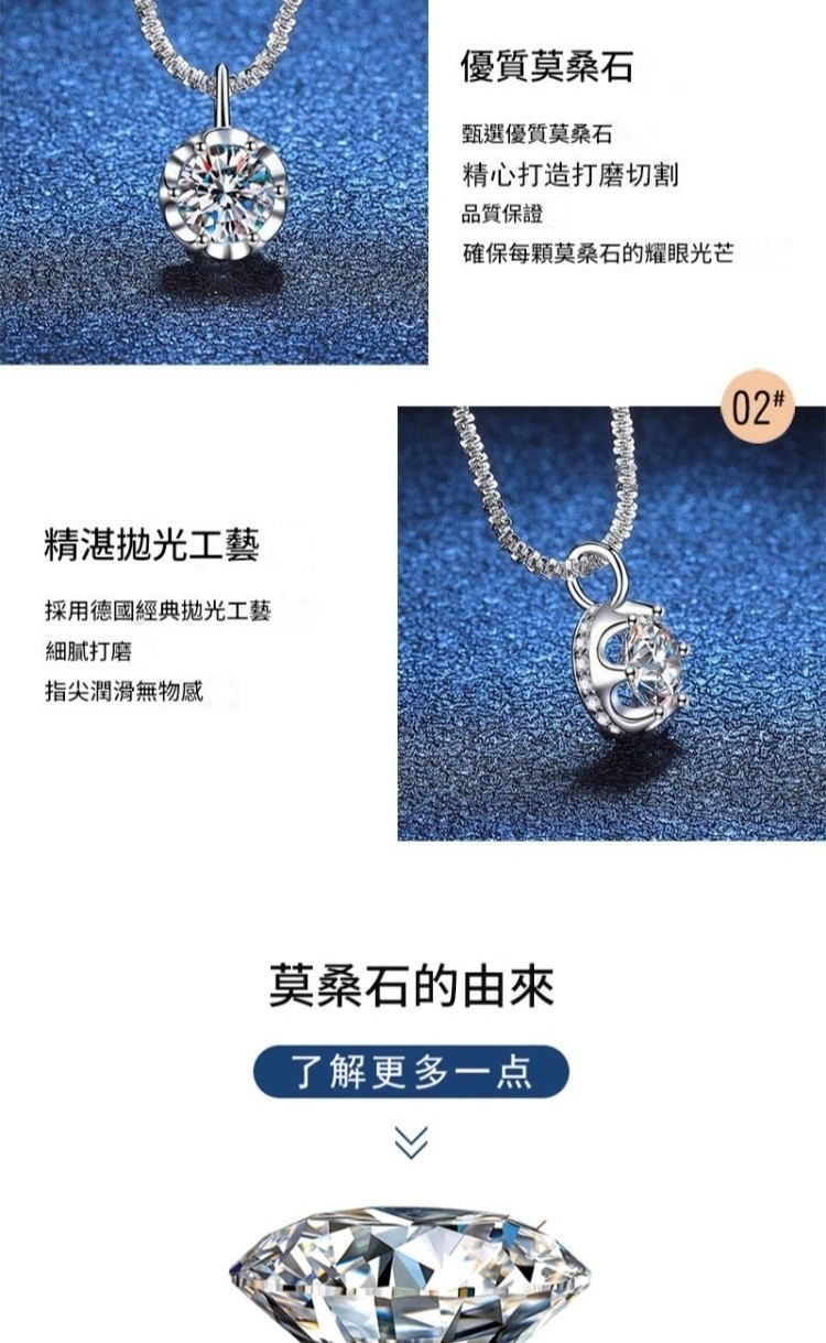 現貨+預購 頂級莫桑鑽石項鍊925純銀女項鍊項鏈鎖骨鏈情人節禮物-1克拉閃耀皇冠女飾品a1kv1