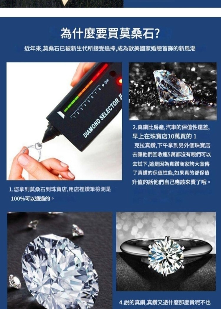 現貨+預購 頂級莫桑鑽石戒指925純銀戒指婚戒女鑽戒子對戒尾戒情人節禮物-1克拉女飾品a1kv12