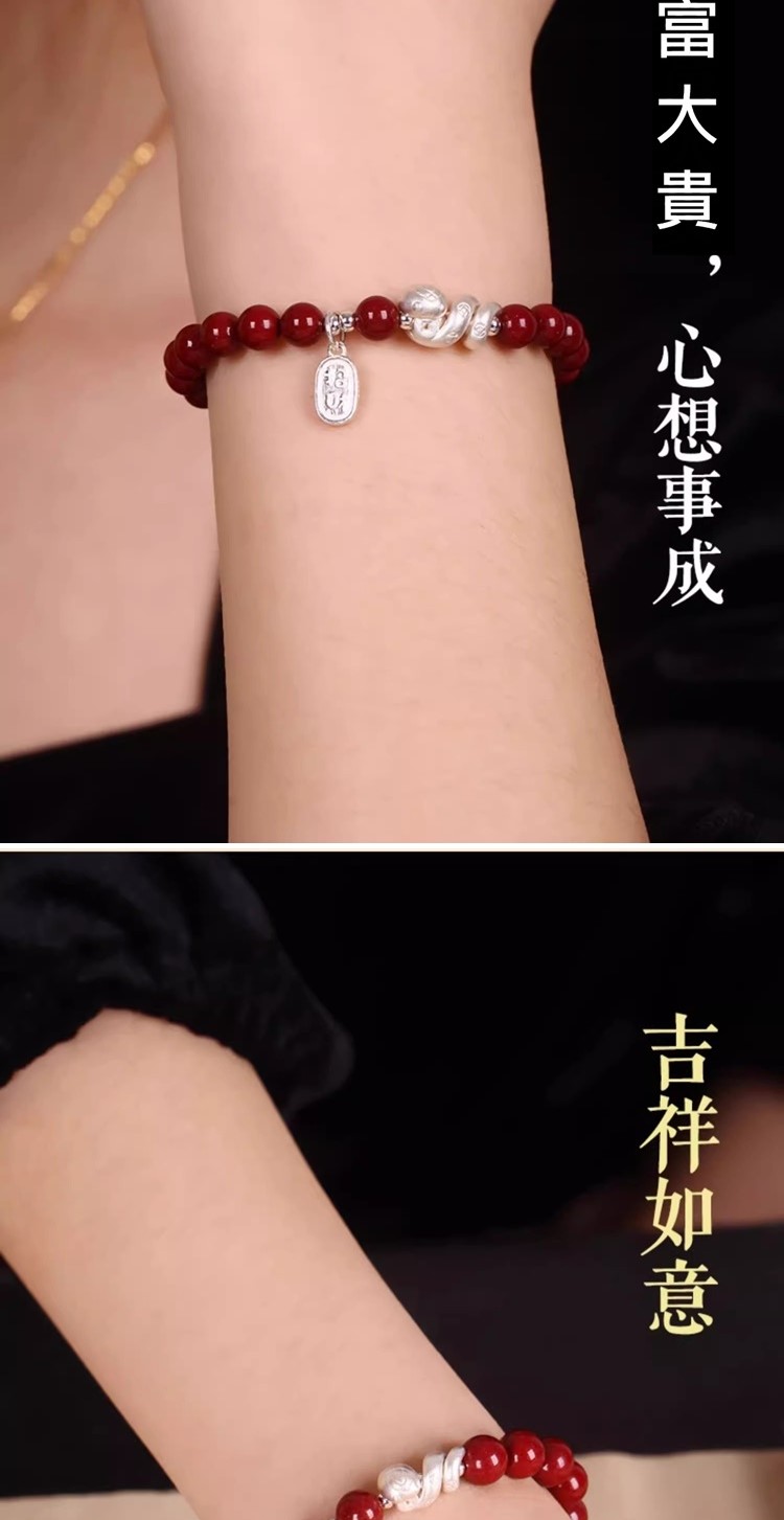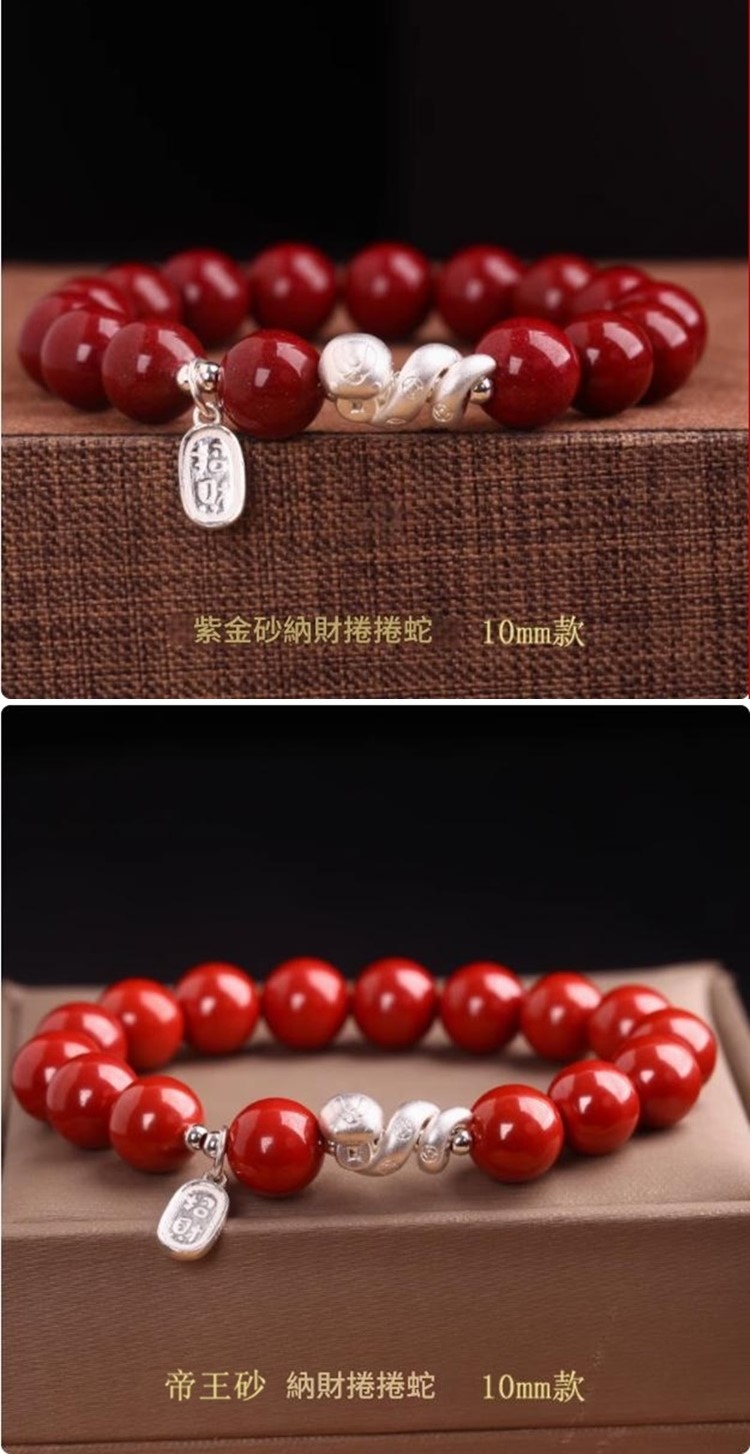 現貨+預購硃砂手鍊朱砂手珠手串擋煞防小人轉運除穢淨化招財開運-10mm捲捲蛇男女飾品a1jt101
