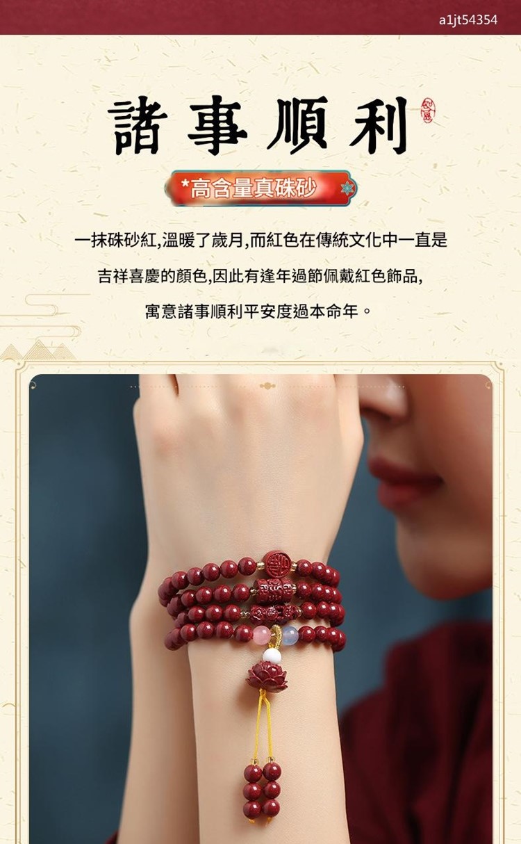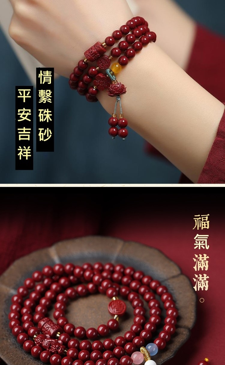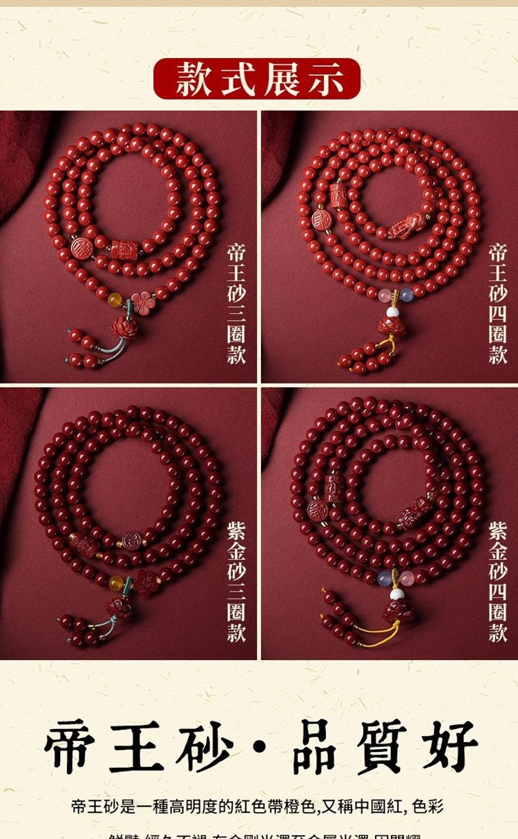 現貨+預購硃砂佛珠108顆念珠朱砂項鍊手鍊擋煞轉運除穢淨化招財開運-三圈男女手串2款a1jt109