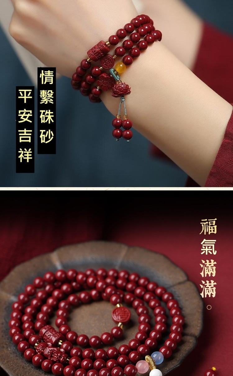 現貨+預購硃砂佛珠108顆念珠朱砂項鍊手鍊擋煞轉運除穢淨化招財開運-四圈男女手串2款a1jt110