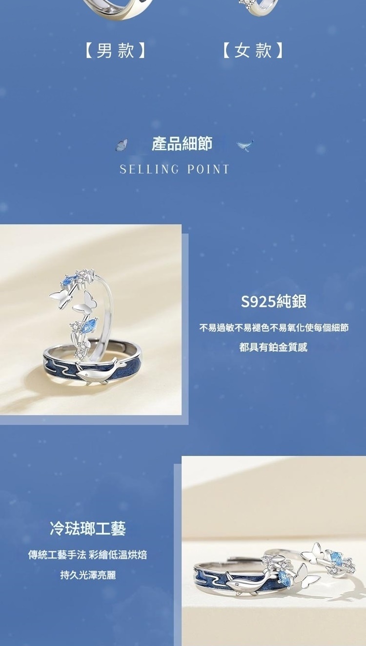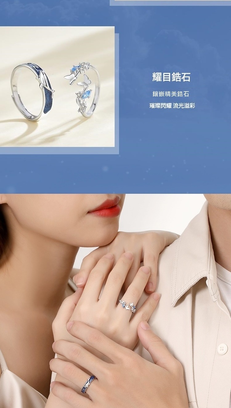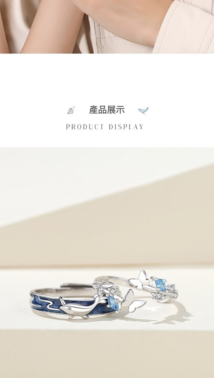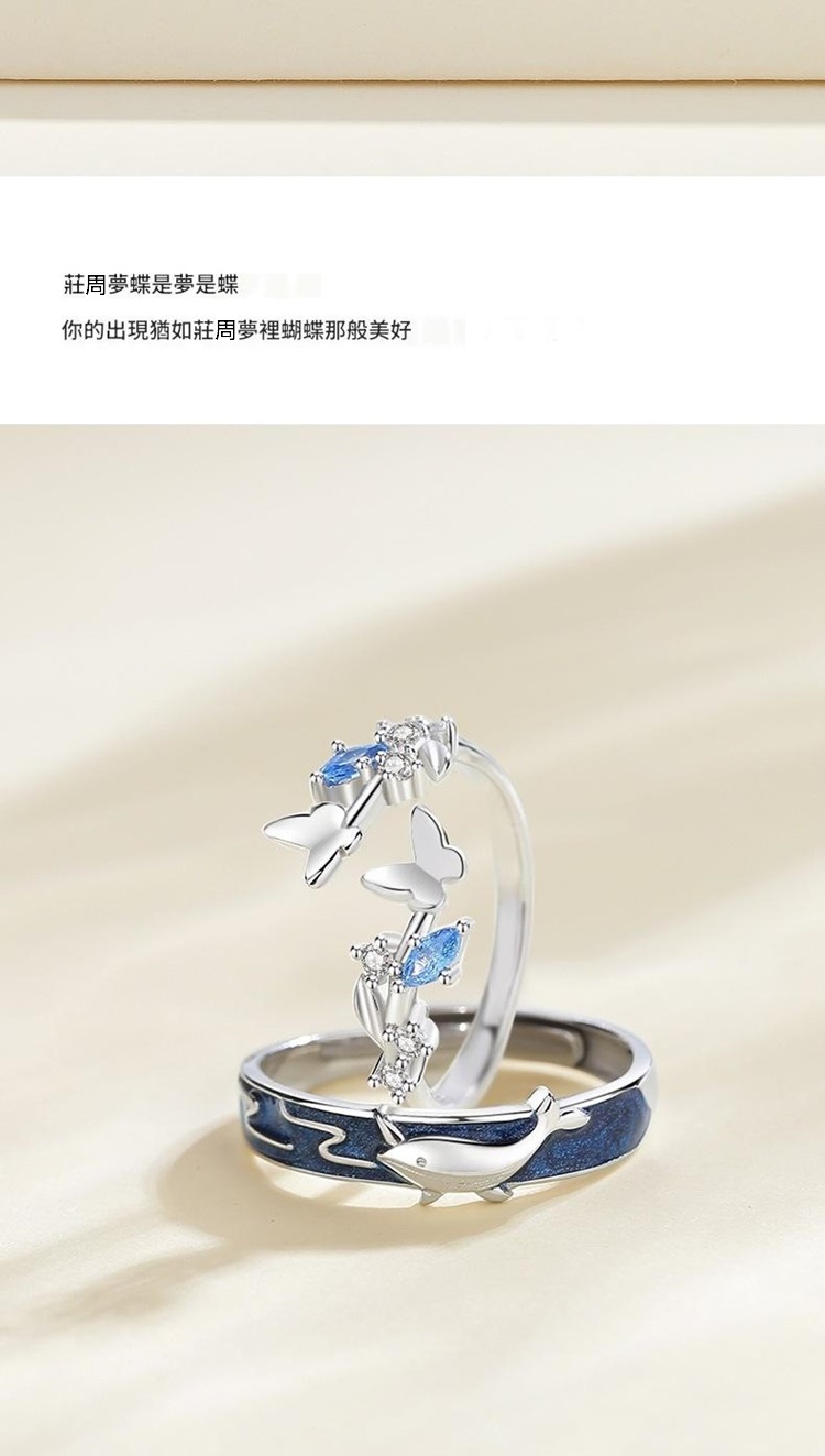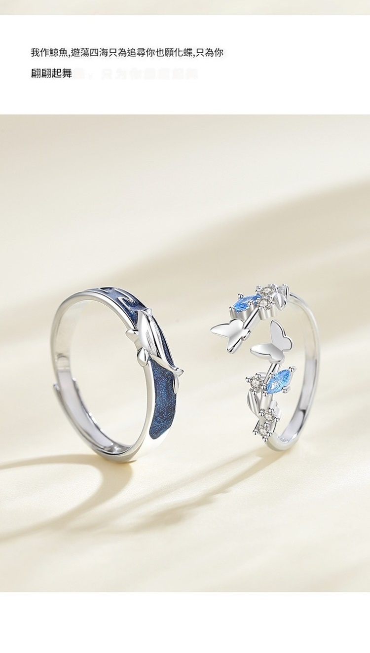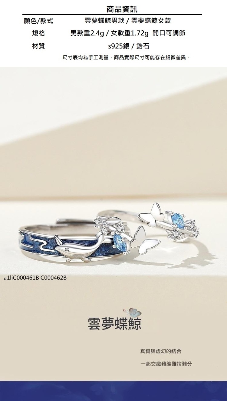 現貨+預購頂級925純銀戒指婚戒女鑽戒開口戒子情侶對戒尾戒情人節禮物-蝴蝶鯨魚男女飾品a1li1