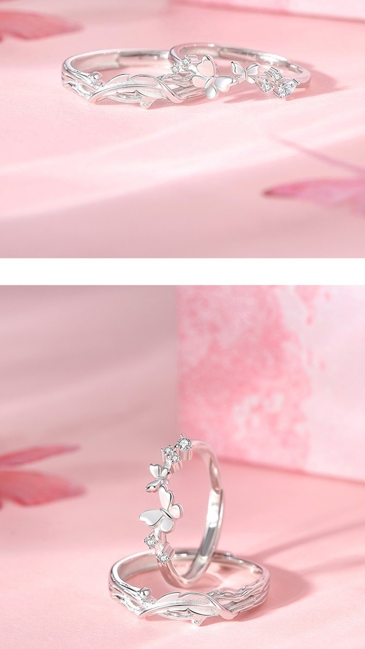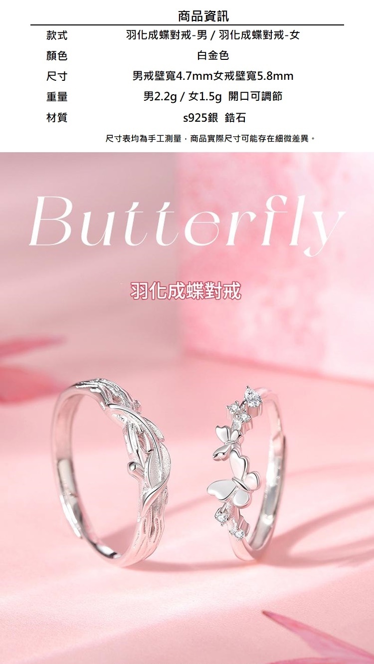 現貨+預購 頂級925純銀戒指婚戒女鑽戒開口戒情侶對戒尾戒情人節禮物-羽化成蝶男女飾品a1li12