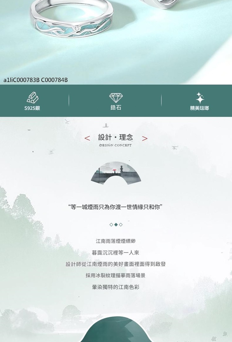 現貨+預購 頂級925純銀戒指婚戒女鑽戒開口戒情侶對戒尾戒情人節禮物-江南煙雨男女飾品a1li13