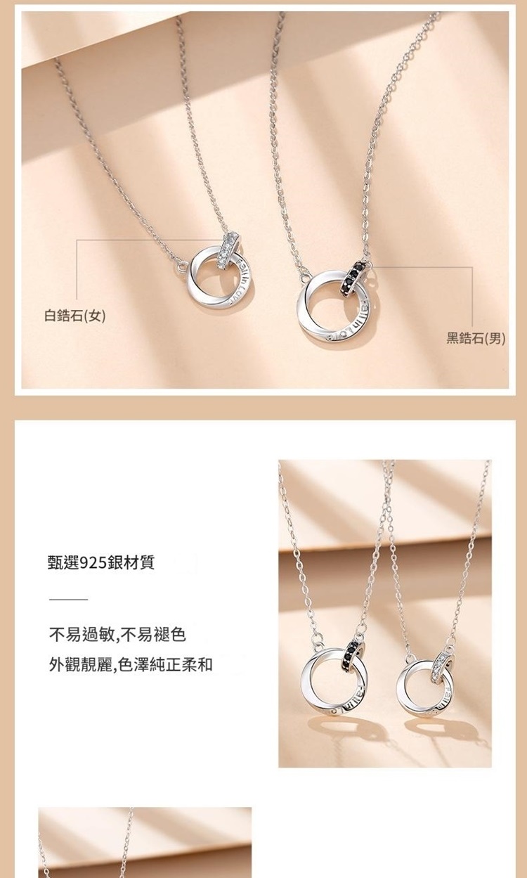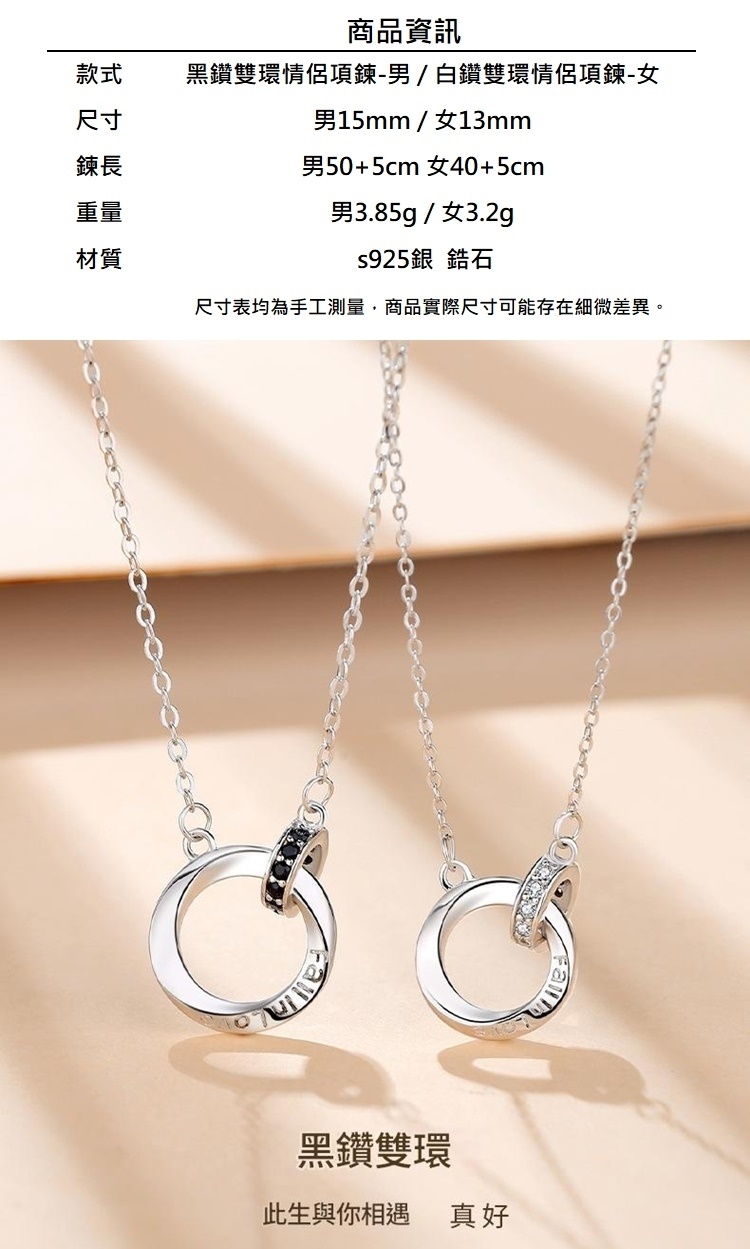 現貨+預購 頂級925純銀項鍊女項鍊項鏈鎖骨鍊情人節禮物情侶對鍊-經典雙環男女飾品a1li19