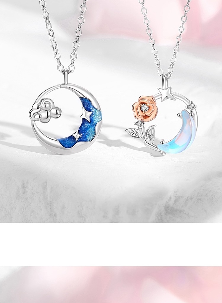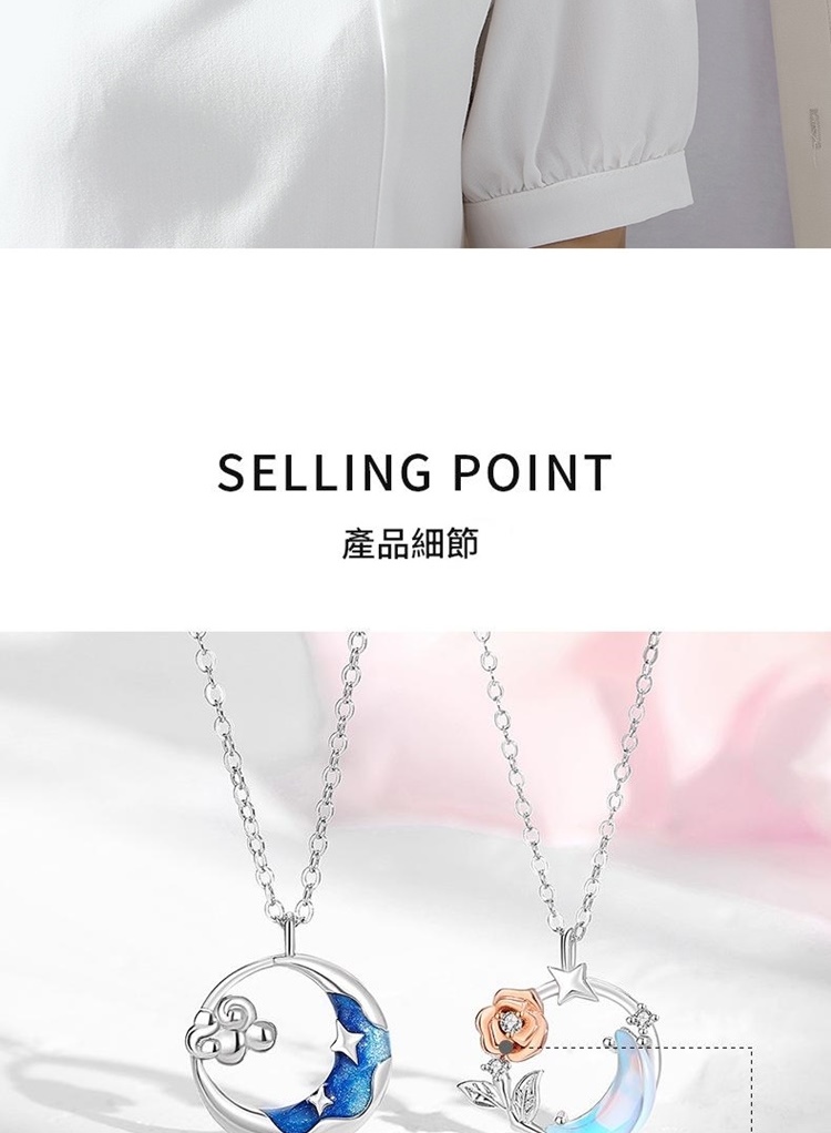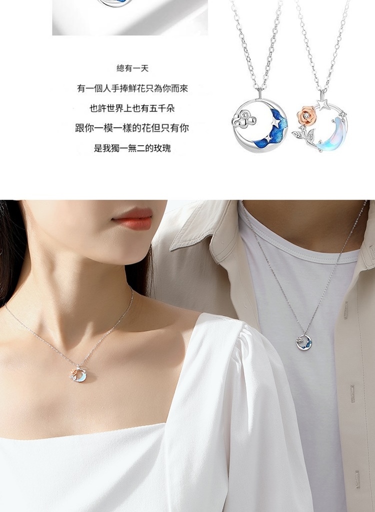 現貨+預購 頂級925純銀項鍊女項鍊項鏈鎖骨鍊情人節禮物情侶對鍊-月色玫瑰純銀男女飾品a1li20