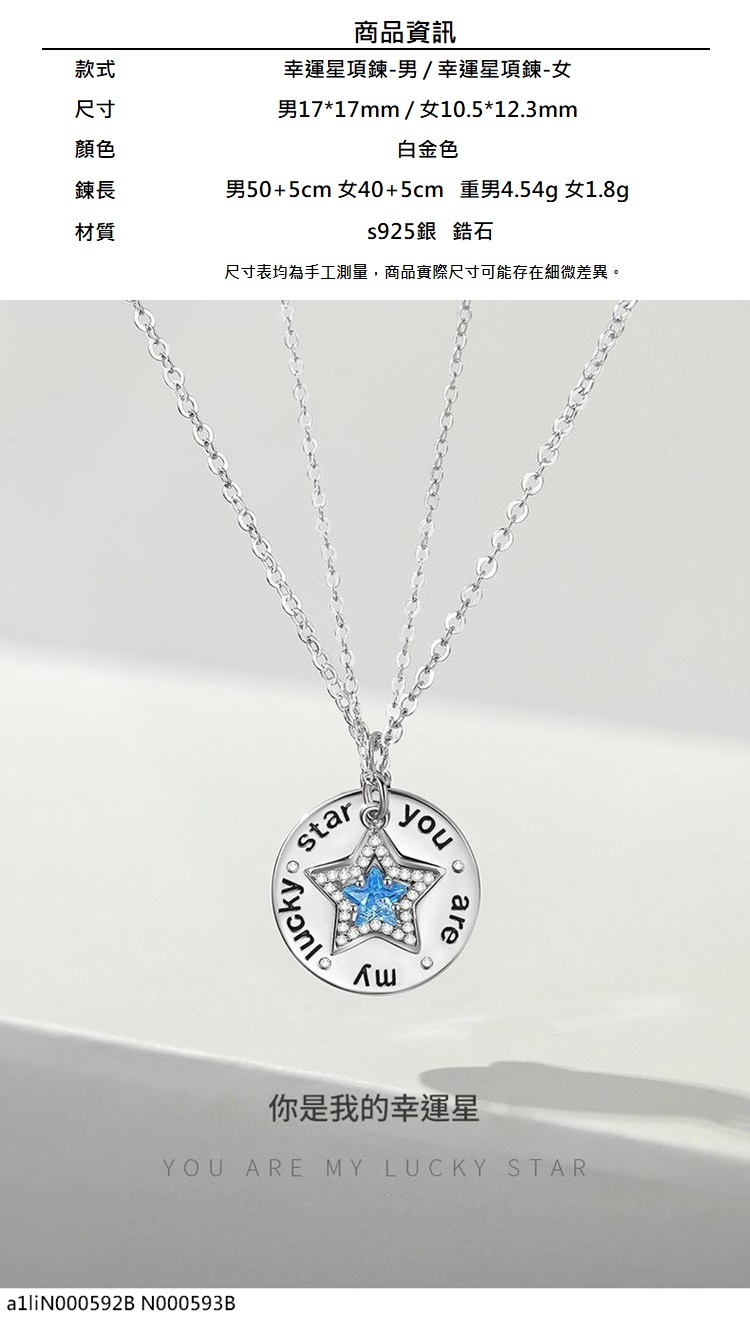現貨+預購 頂級925純銀項鍊女項鍊項鏈鎖骨鍊情人節禮物情侶對鍊-幸運星項鍊男女飾品a1li27