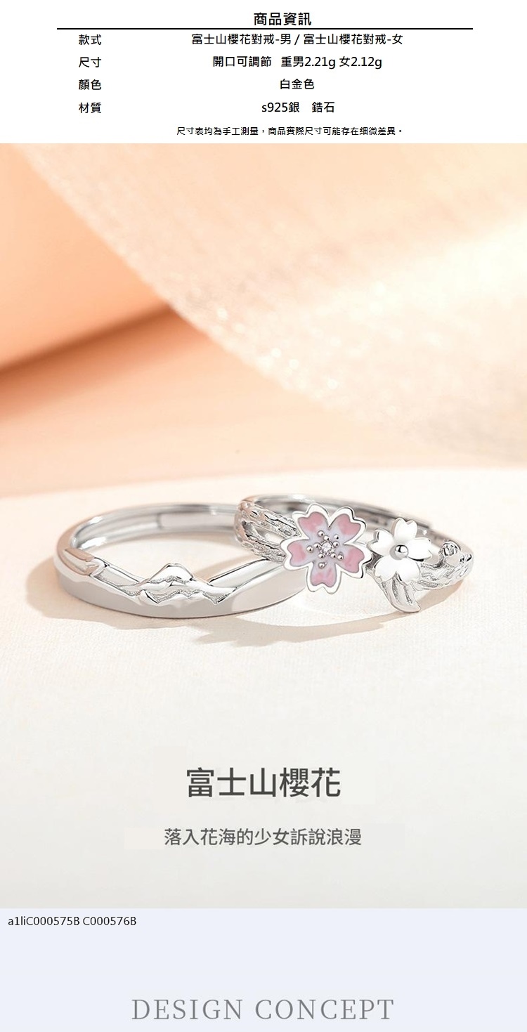 現貨+預購 頂級925純銀戒指婚戒女鑽戒開口戒情侶對戒尾戒情人節禮物-富士山男女飾品a1li37