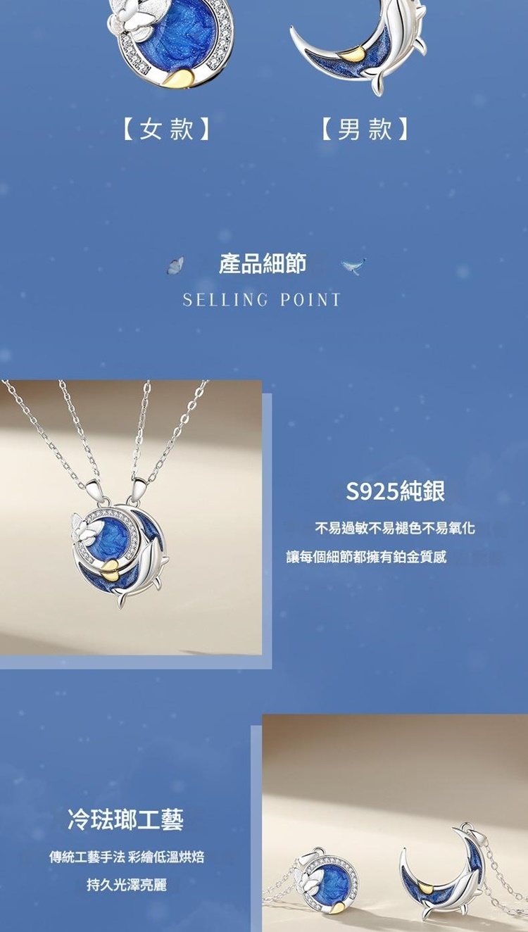 現貨+預購 頂級925純銀項鍊女項鍊項鏈鎖骨鍊情人節禮物情侶對鍊-雲夢蝶鯨男女飾品a1li41
