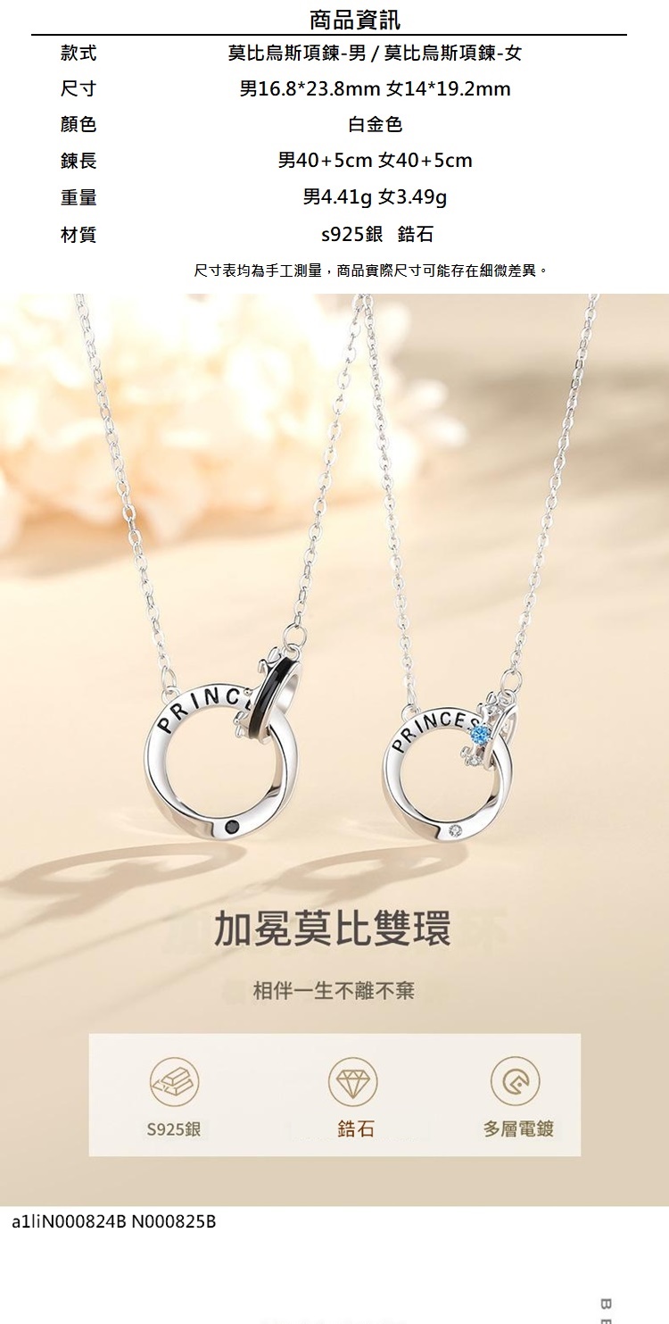 現貨+預購 頂級925純銀項鍊女項鍊項鏈鎖骨鍊情人節禮物情侶對鍊-莫比烏斯男女飾品a1li42