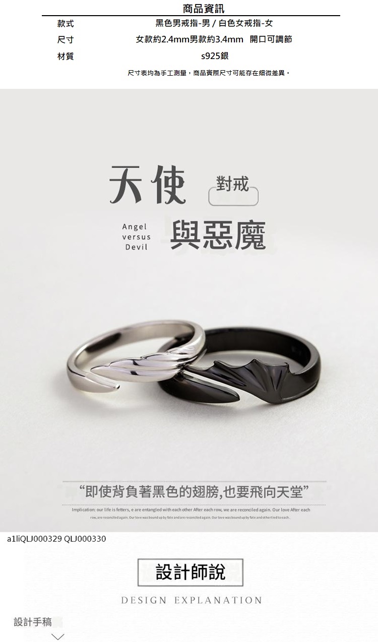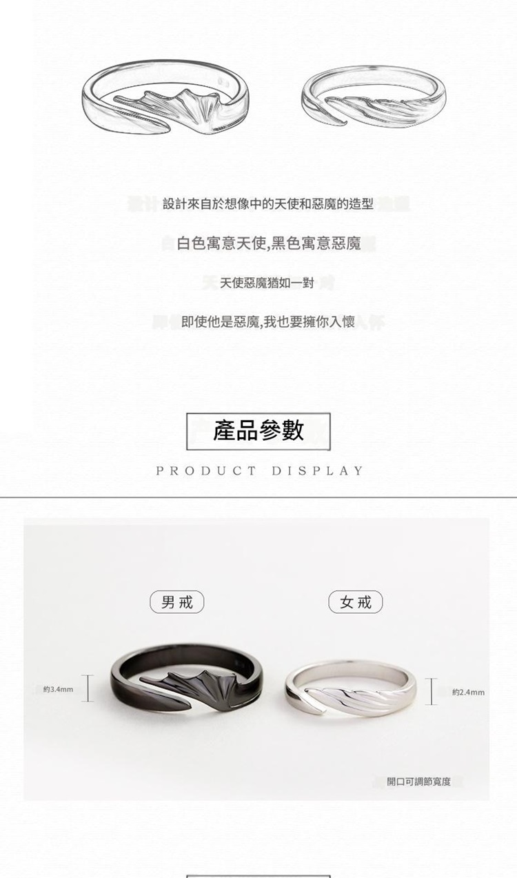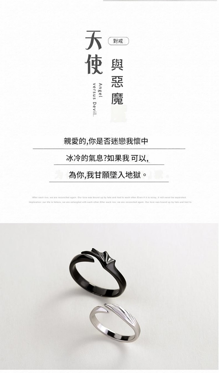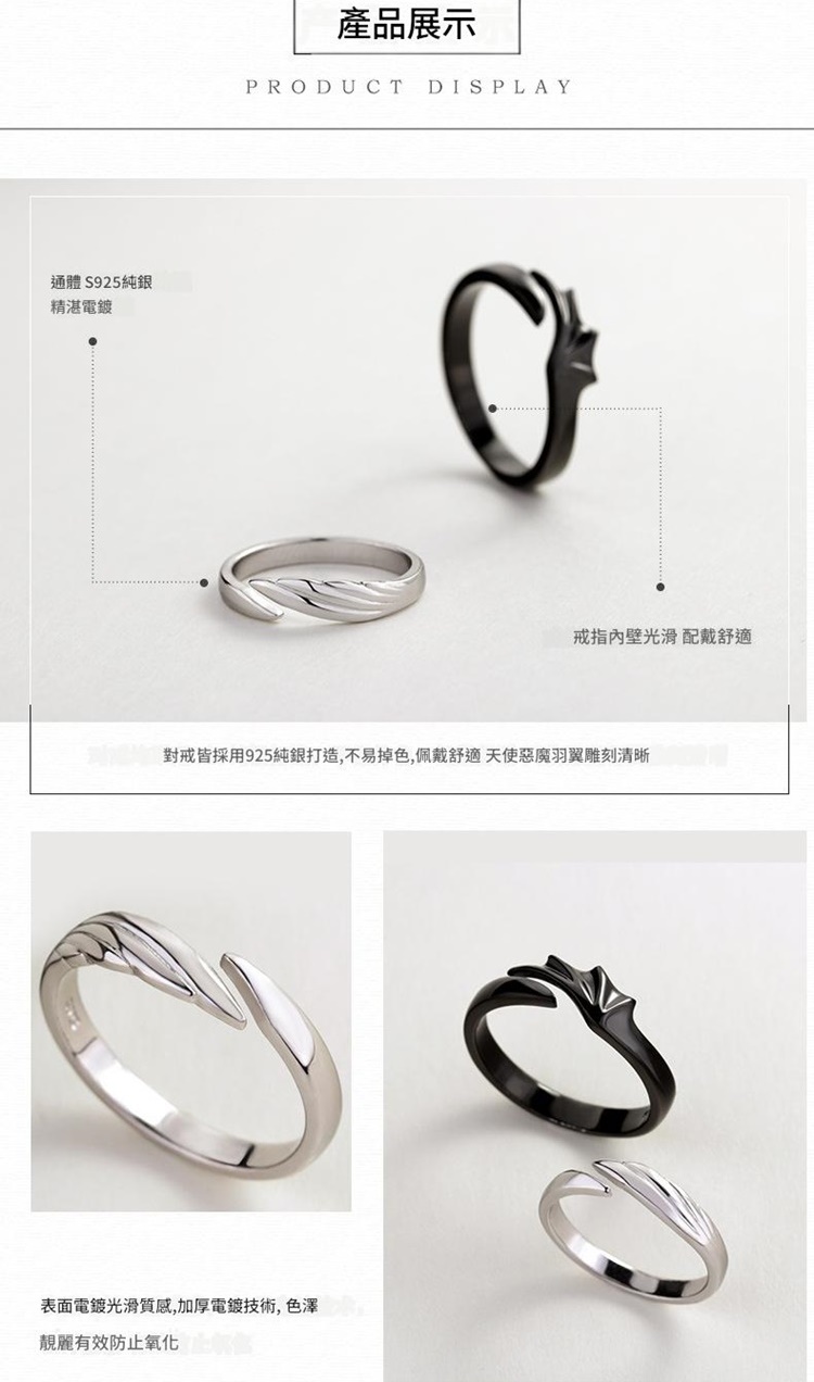 現貨+預購 頂級925純銀戒指婚戒女鑽戒開口戒情侶對戒尾戒情人節禮物-天使惡魔男女飾品a1li52