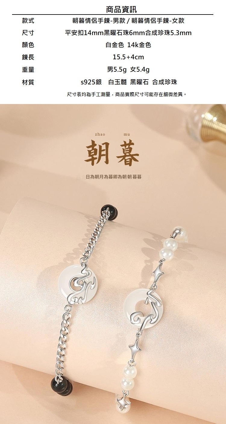 現貨+預購 頂級925純銀手鍊情侶手鏈女首飾情人節禮物-新款朝暮情侶手鍊男女飾品a1li62
