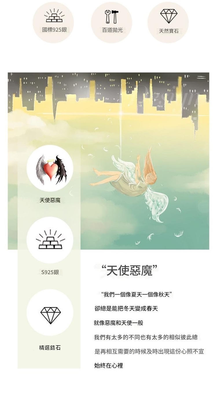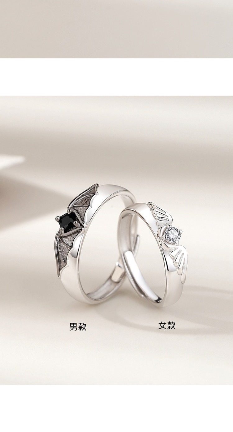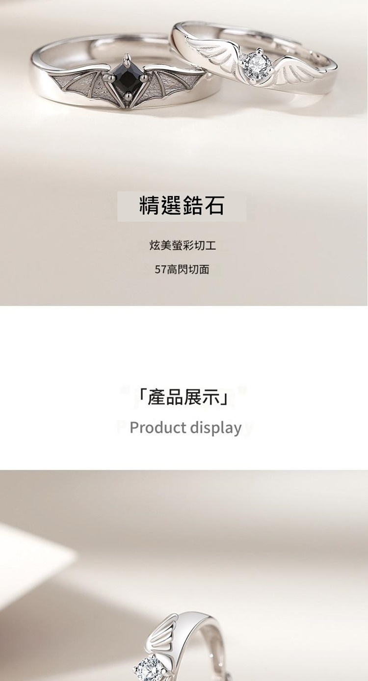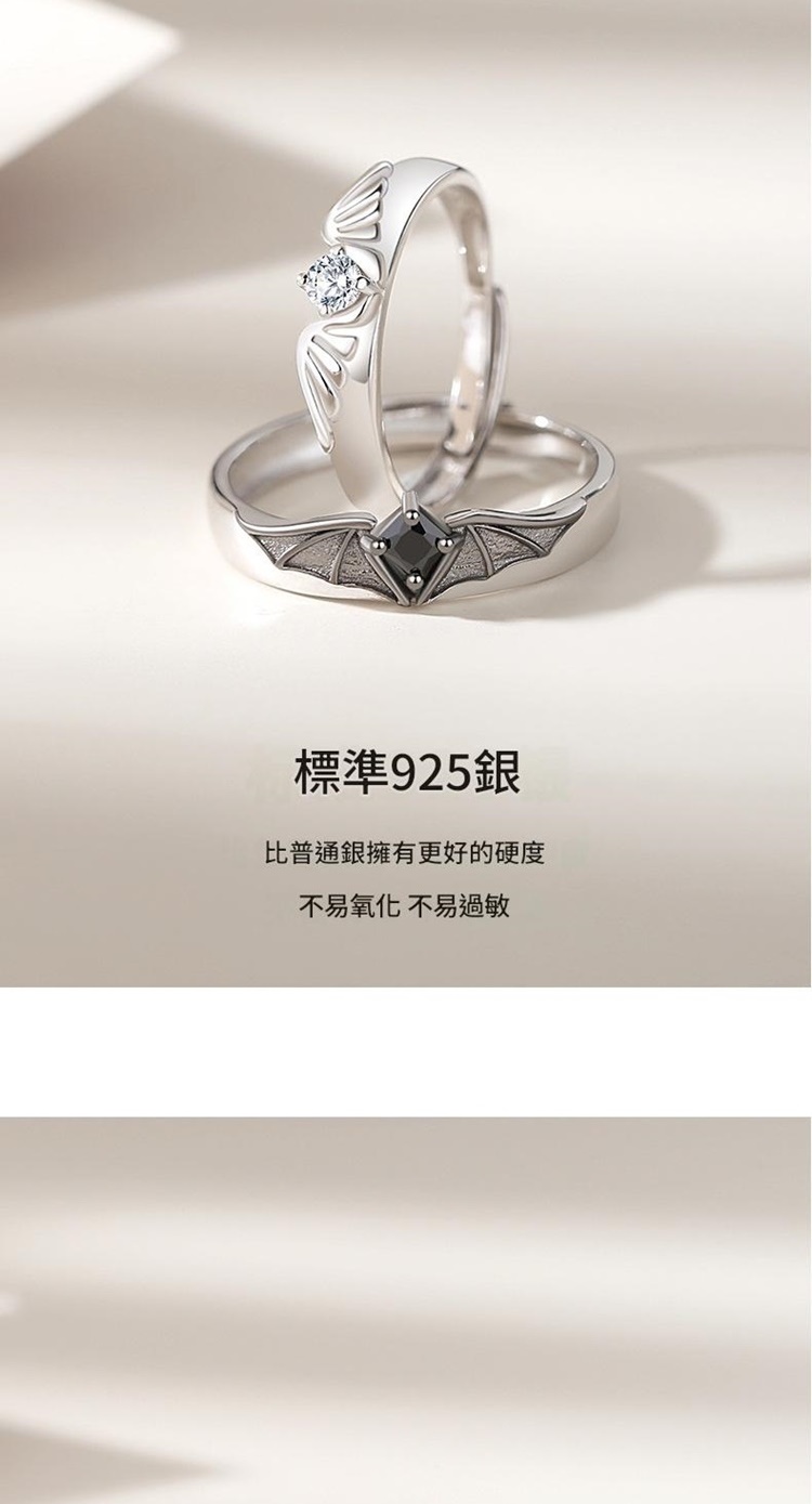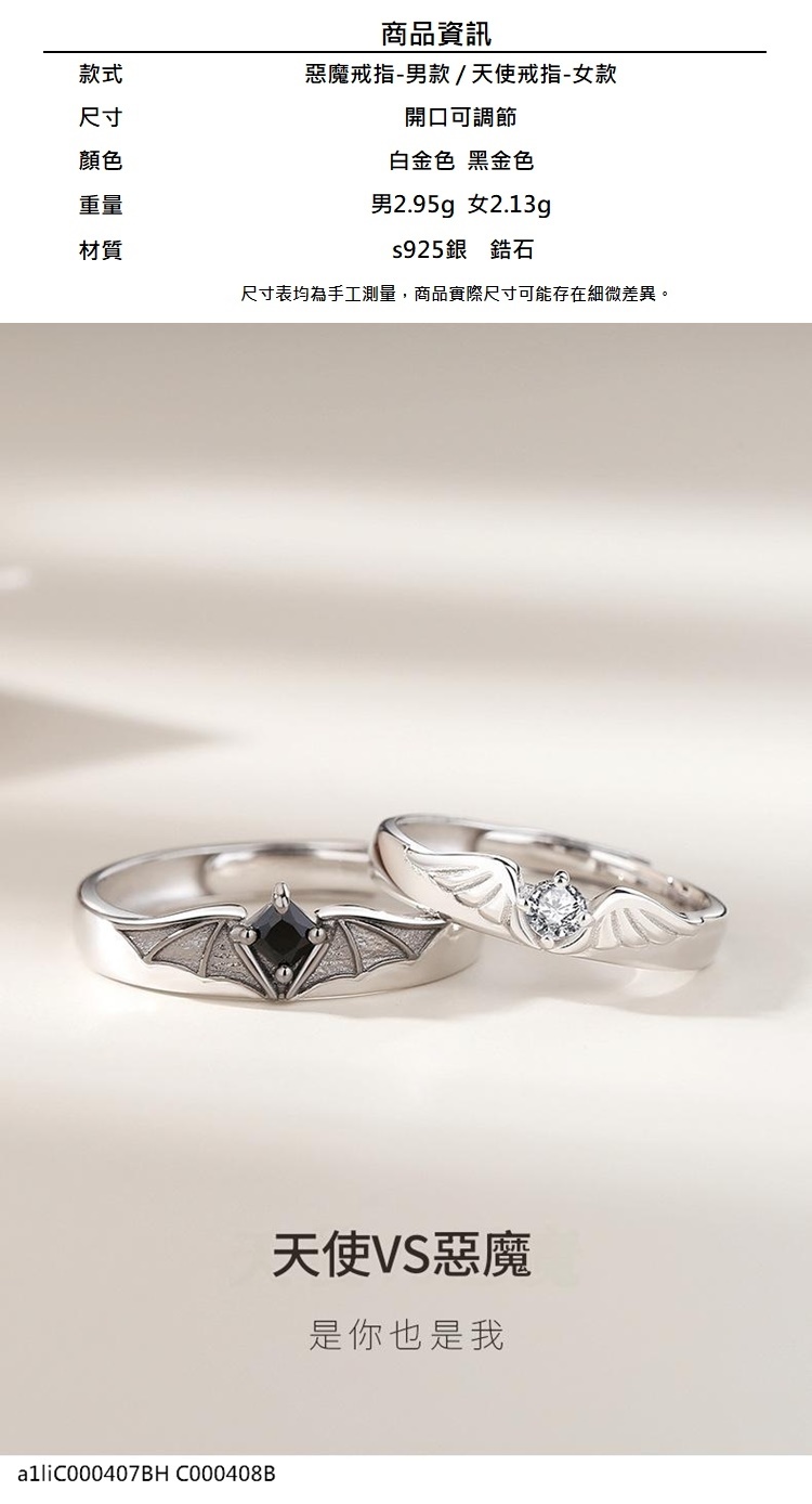 現貨+預購 頂級925純銀戒指婚戒女鑽戒開口戒情侶對戒尾戒情人節禮物-天使惡魔男女飾品a1li65
