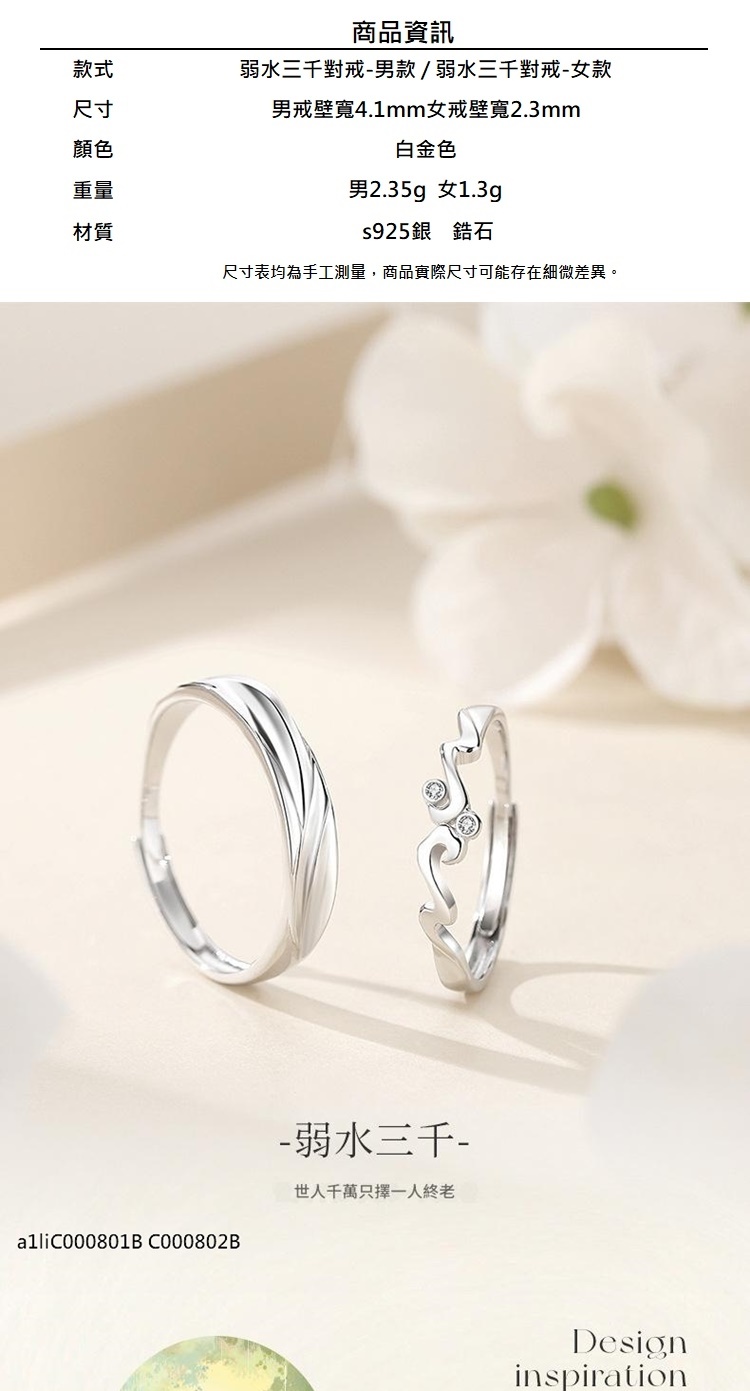 現貨+預購 頂級925純銀戒指婚戒女鑽戒開口戒情侶對戒尾戒情人節禮物-弱水三千男女飾品a1li70