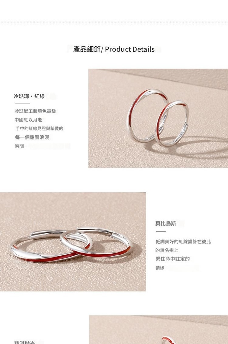 現貨+預購 頂級925純銀戒指婚戒女鑽戒開口戒情侶對戒尾戒情人節禮物-紅線男女飾品a1li72
