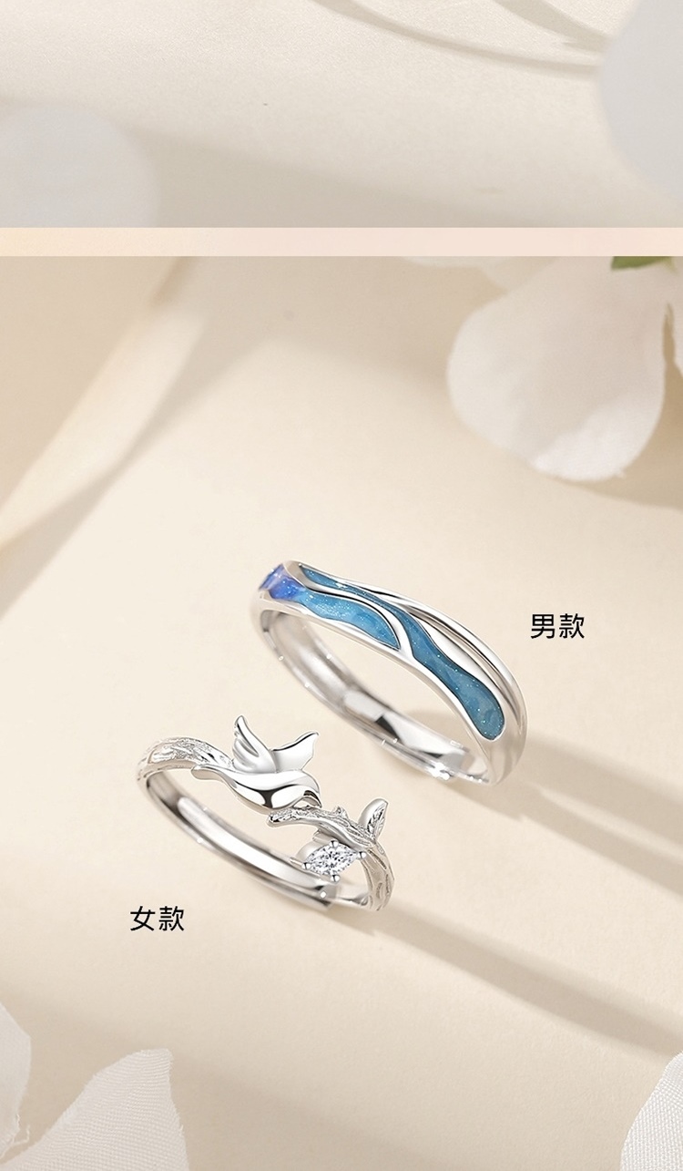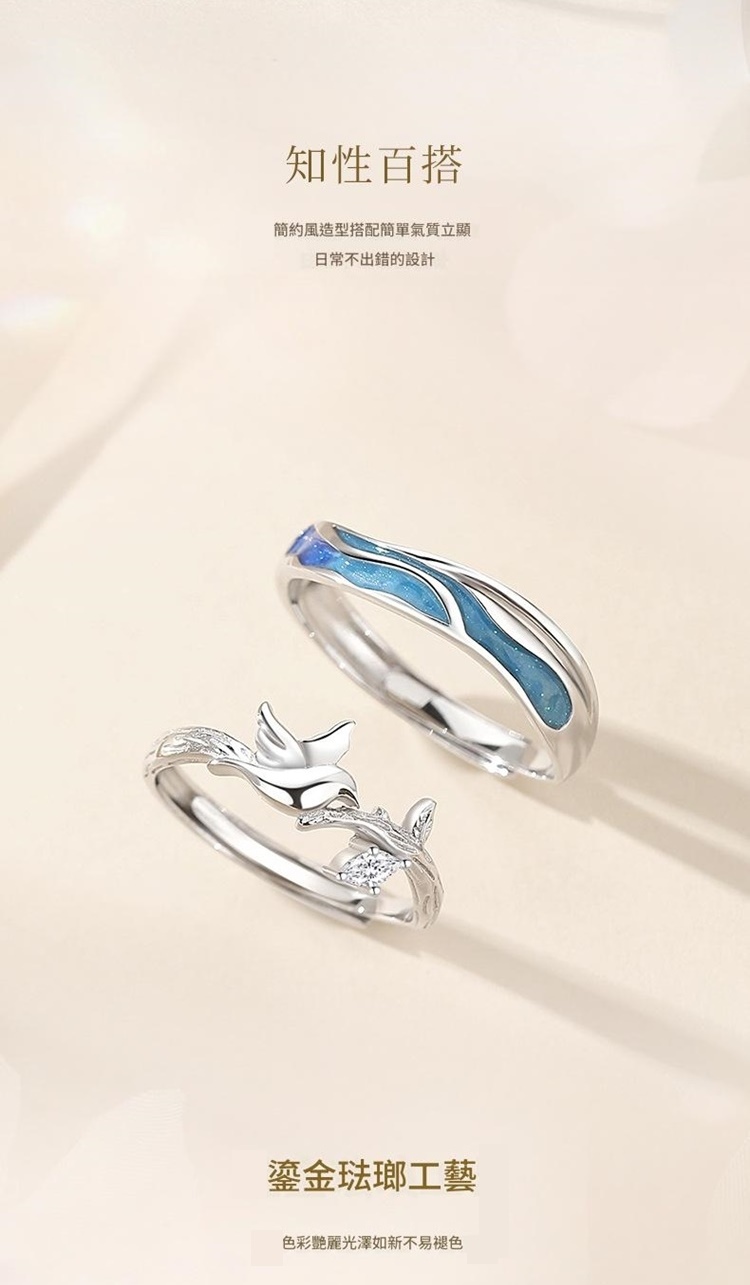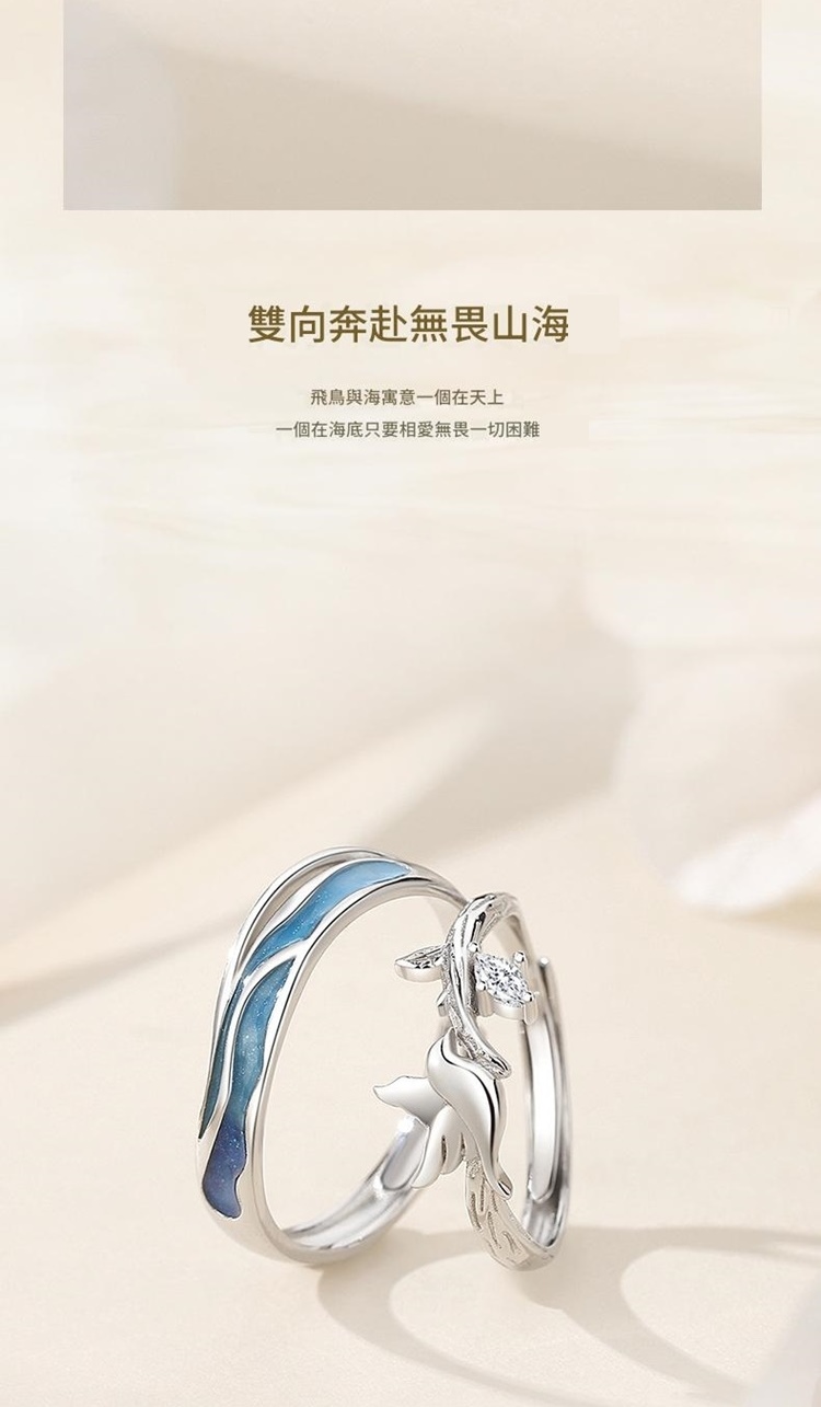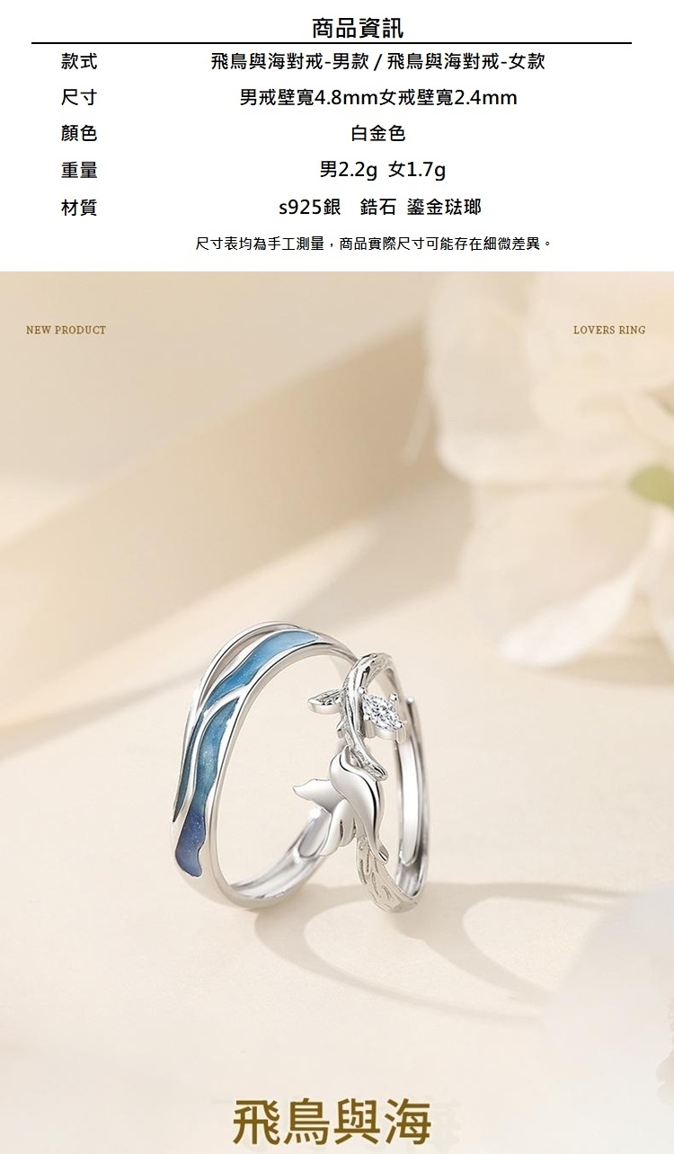 現貨+預購 頂級925純銀戒指婚戒女鑽戒開口戒情侶對戒尾戒情人節禮物-飛鳥與海男女飾品a1li78