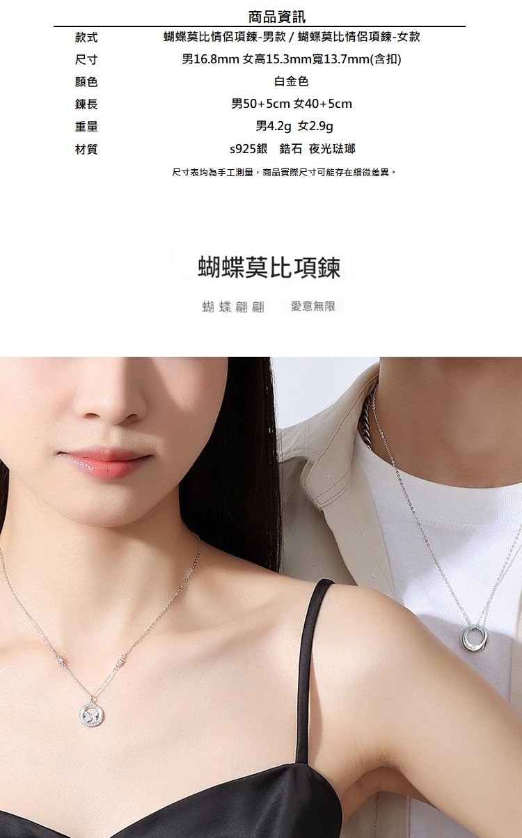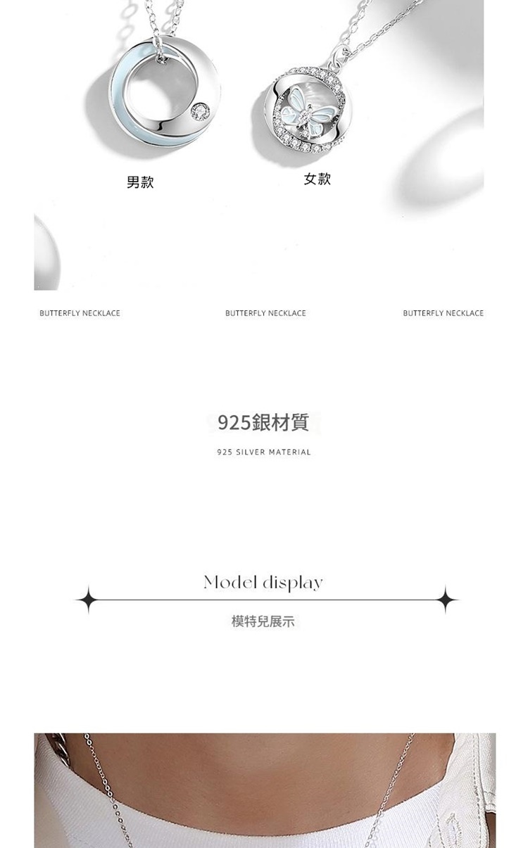 現貨+預購 頂級925純銀項鍊女項鍊項鏈鎖骨鍊情人節禮物情侶對鍊-蝴蝶莫比男女飾品a1li85
