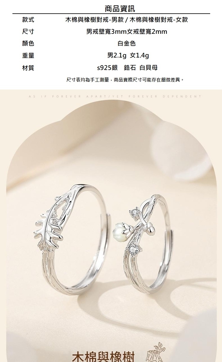 現貨+預購 頂級925純銀戒指婚戒女鑽戒開口戒情侶對戒尾戒情人節禮物-木棉橡樹男女飾品a1li86