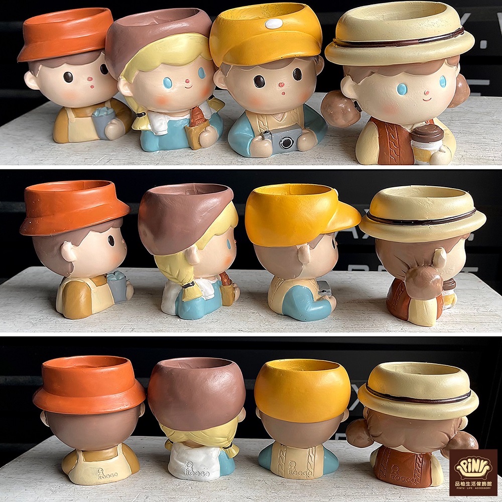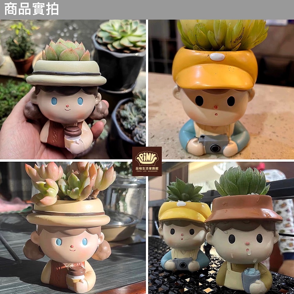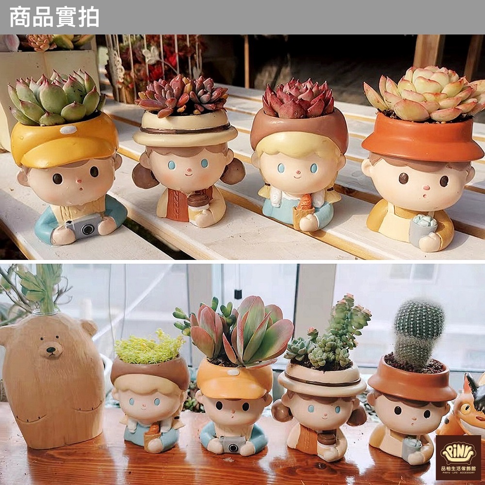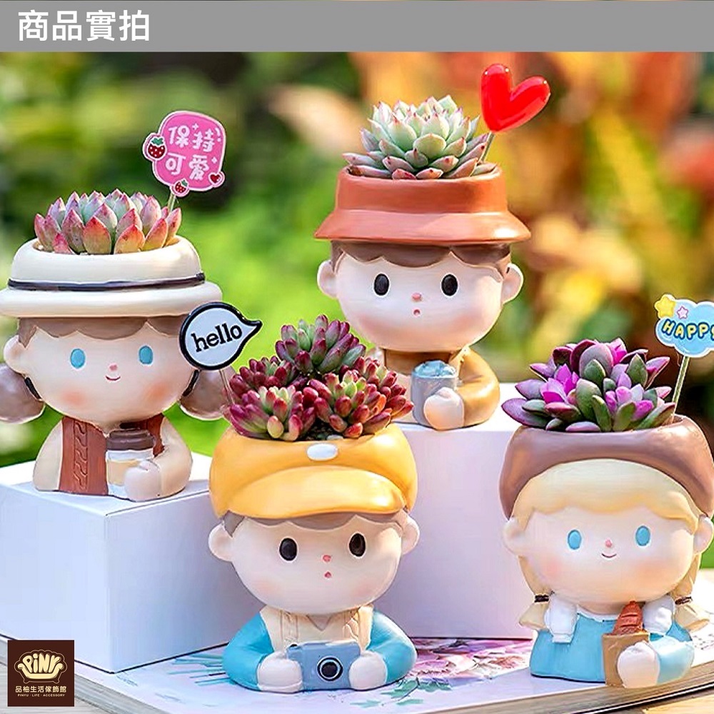 【PiNYU 品柚生活傢飾館】4件組-童年出遊多肉小盆栽(樹脂多肉植物盆栽可愛童年出遊花盆家用辦公室盆景盆)