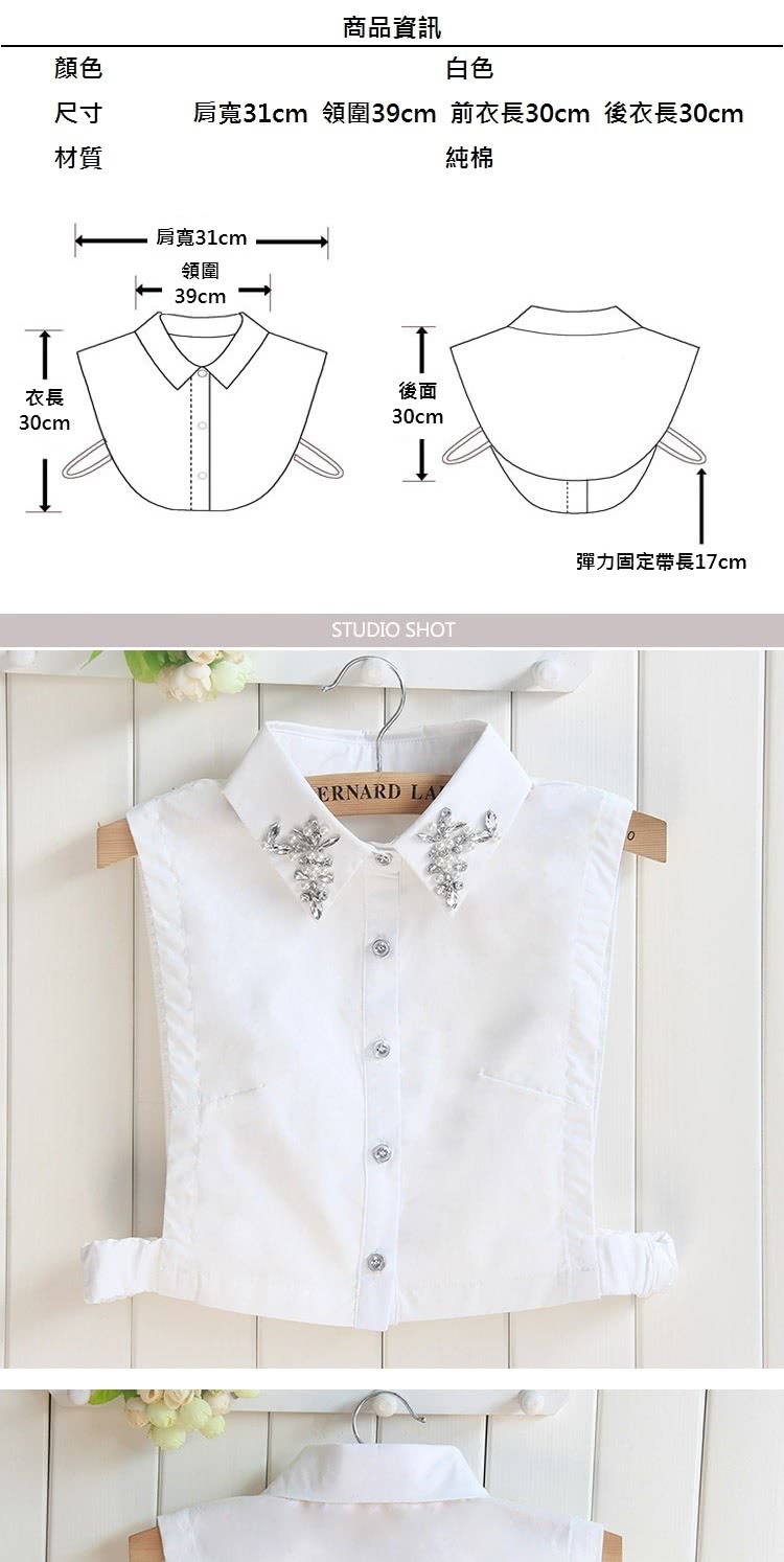 【米蘭精品】現貨+預購 假領子襯衫領片白色尖領水鑽釘珠女裝配件生日情人節禮物73vk12