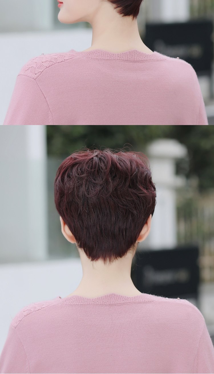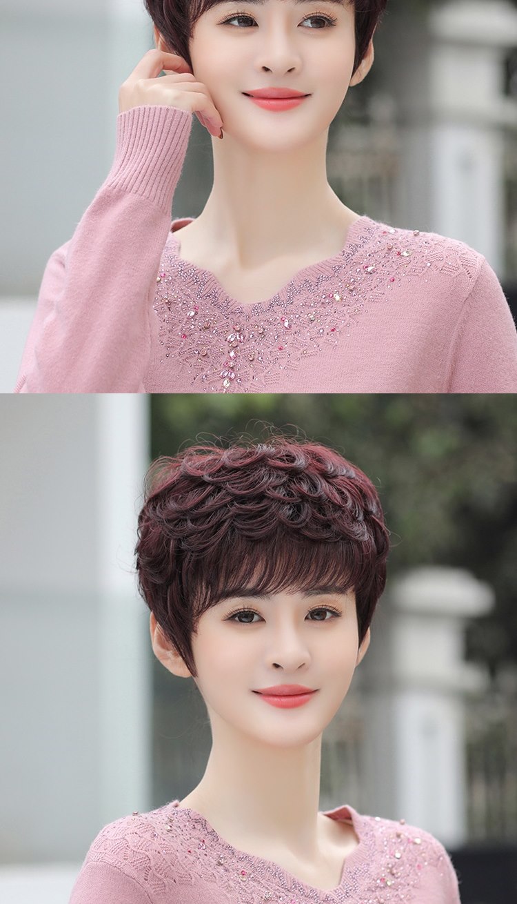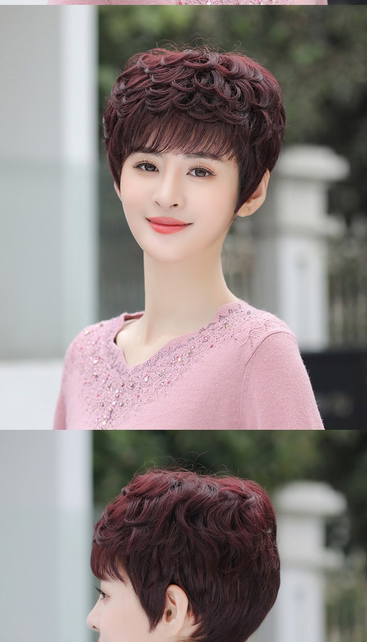 【米蘭精品】現貨+預購 女假髮整頂真髮絲短髮斜瀏海捲髮蓬鬆中老年母親節禮物3色74ai22