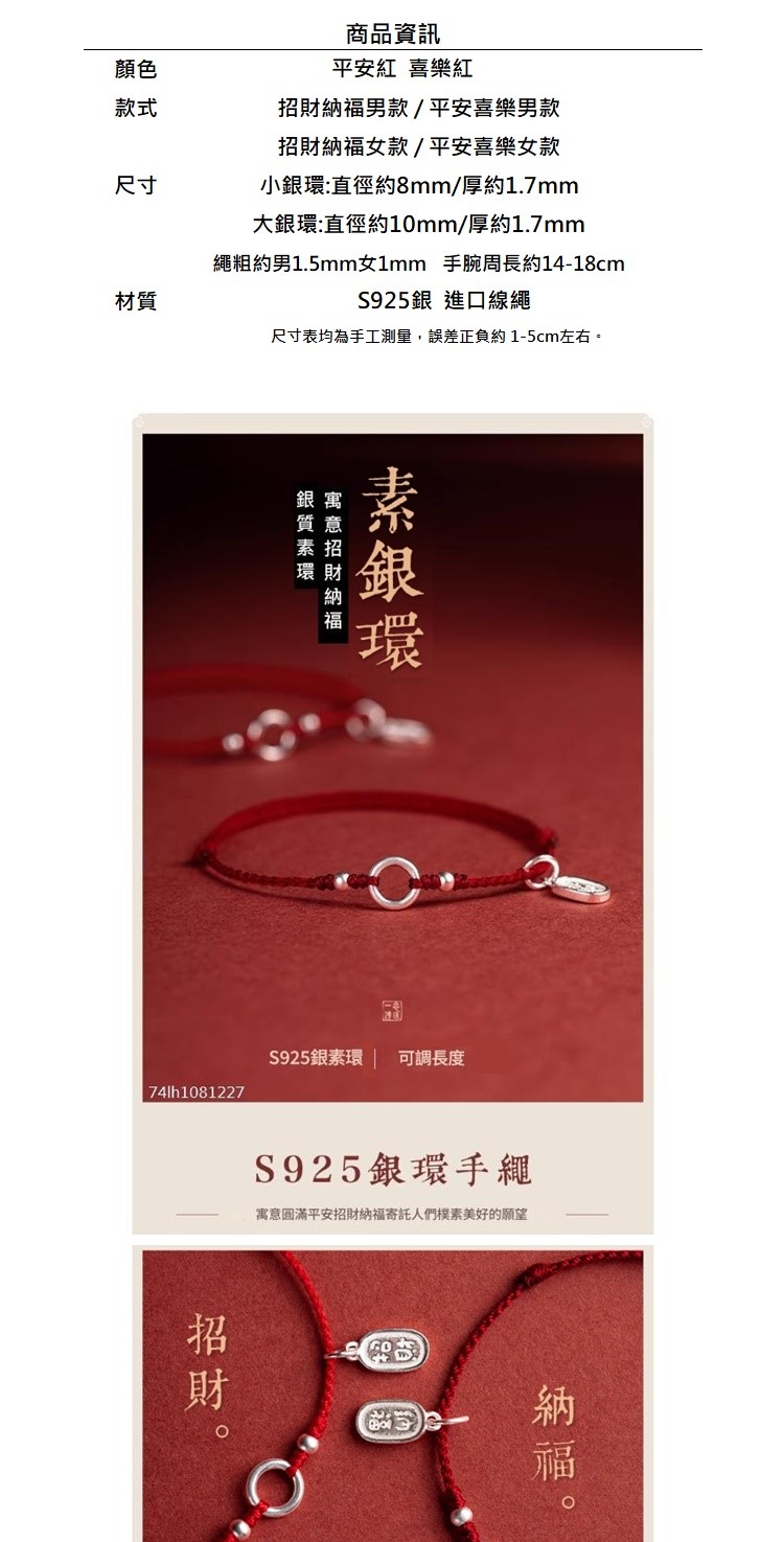 現貨+預購 純銀手鍊串珠手繩-轉運除穢淨化招財開運本命年純銀紅繩男2色74lh43