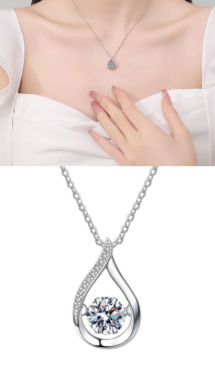 現貨+預購 頂級莫桑鑽石項鍊925純銀女項鍊鎖骨鍊項鏈情人節禮物(1克拉靈動水滴74lq21)