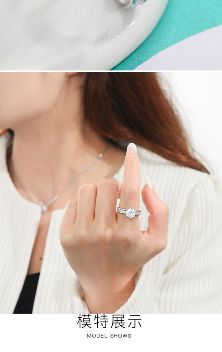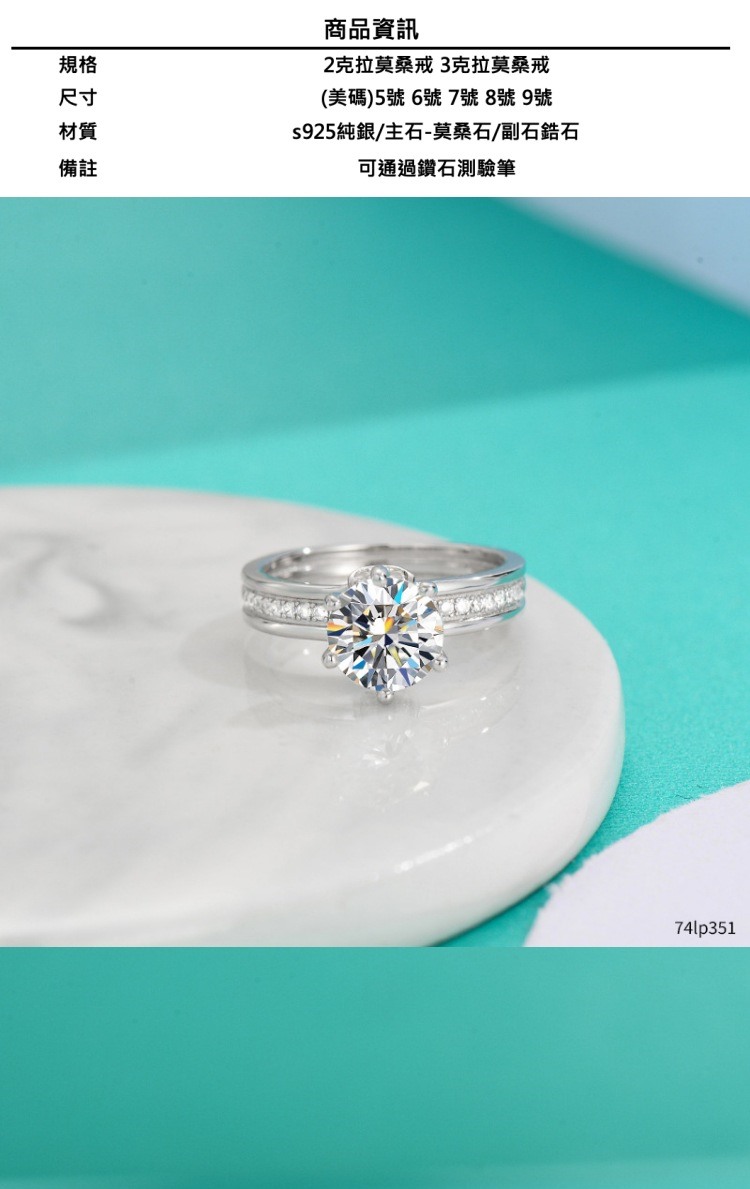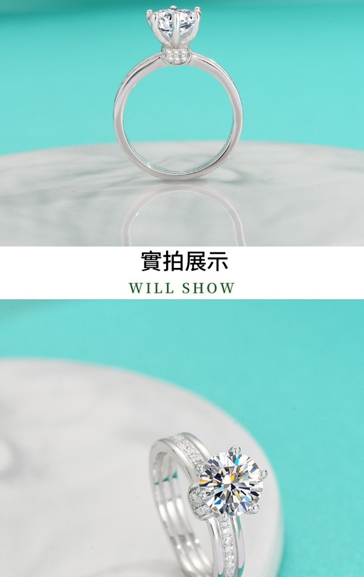 現貨+預購 頂級莫桑鑽石戒指925純銀戒指婚戒女鑽戒子求婚戒情人節禮物(六爪簡約戒2款74lp54)