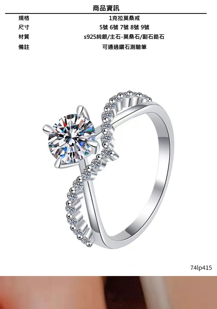 現貨+預購 頂級莫桑鑽石戒指925純銀戒指婚戒女鑽戒子求婚戒情人節禮物(公主皇冠愛心74lp55)