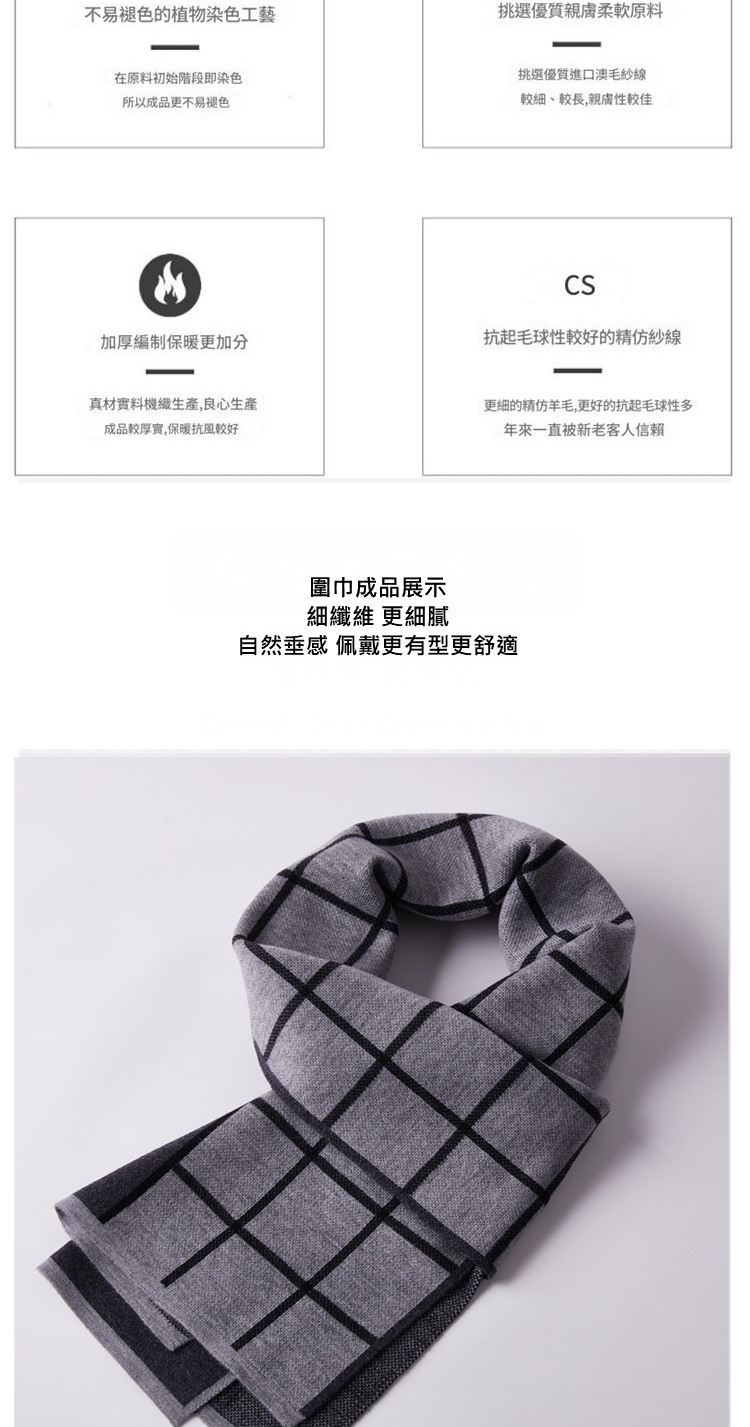 現貨+預購 頂級羊毛圍巾羊絨圍脖秋冬季加絨厚磅保暖針織圍巾休閒-格紋圍巾時尚男女配件74mi86