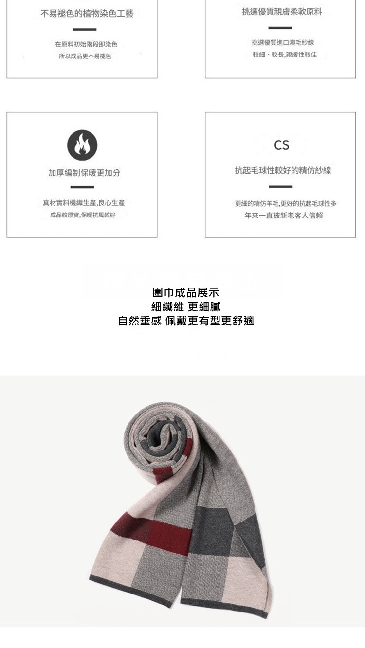 現貨+預購 頂級羊毛圍巾羊絨圍脖秋冬季加絨厚磅保暖針織圍巾休閒-格紋圍巾時尚男女配件74mi83
