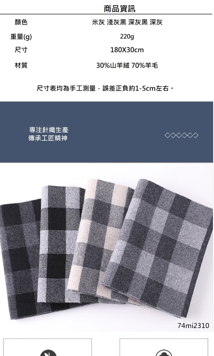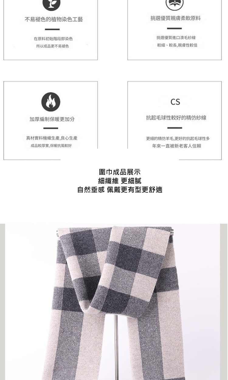 現貨+預購 頂級羊毛圍巾羊絨圍脖秋冬季加絨厚磅保暖針織圍巾休閒-新款格紋百搭男女配件74mi46