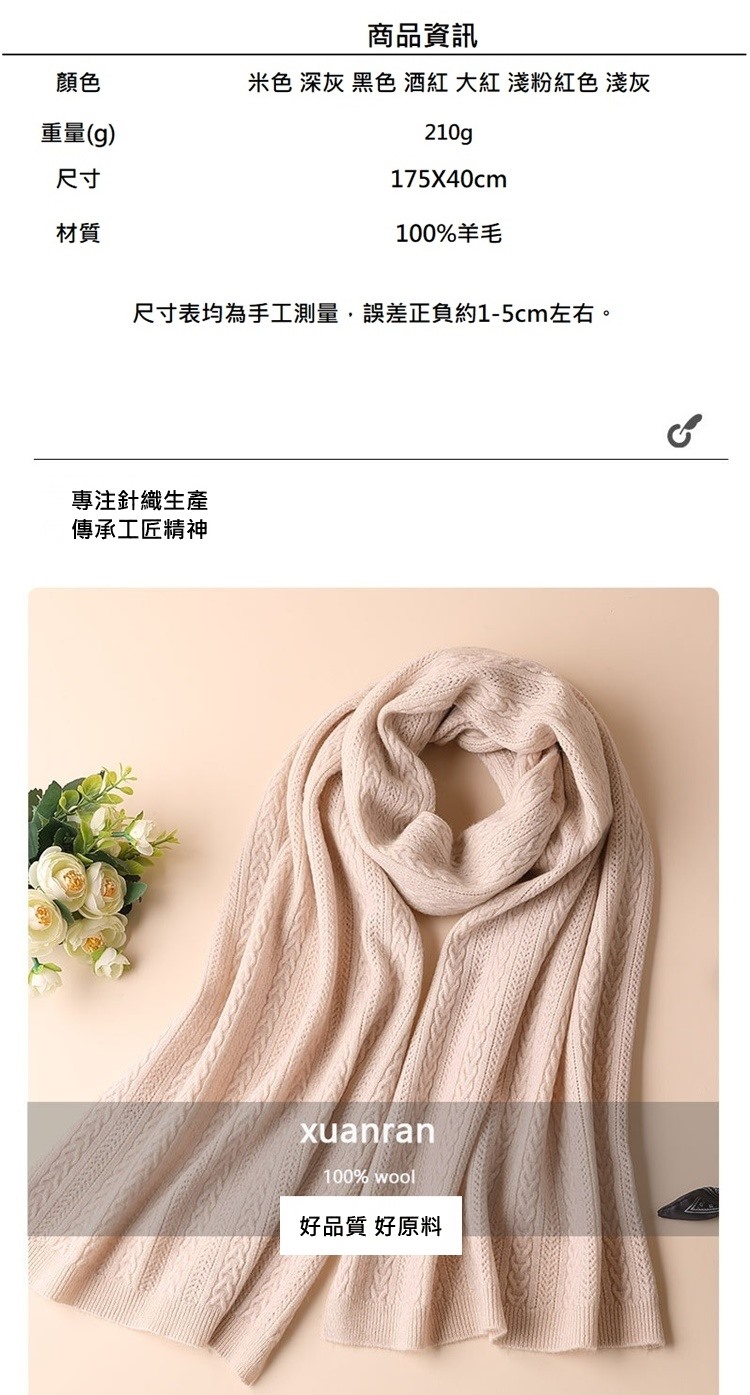 現貨+預購 頂級100%羊毛圍巾圍脖秋冬季加絨厚磅保暖針織圍巾休閒-復古甜美男女配件74mi12