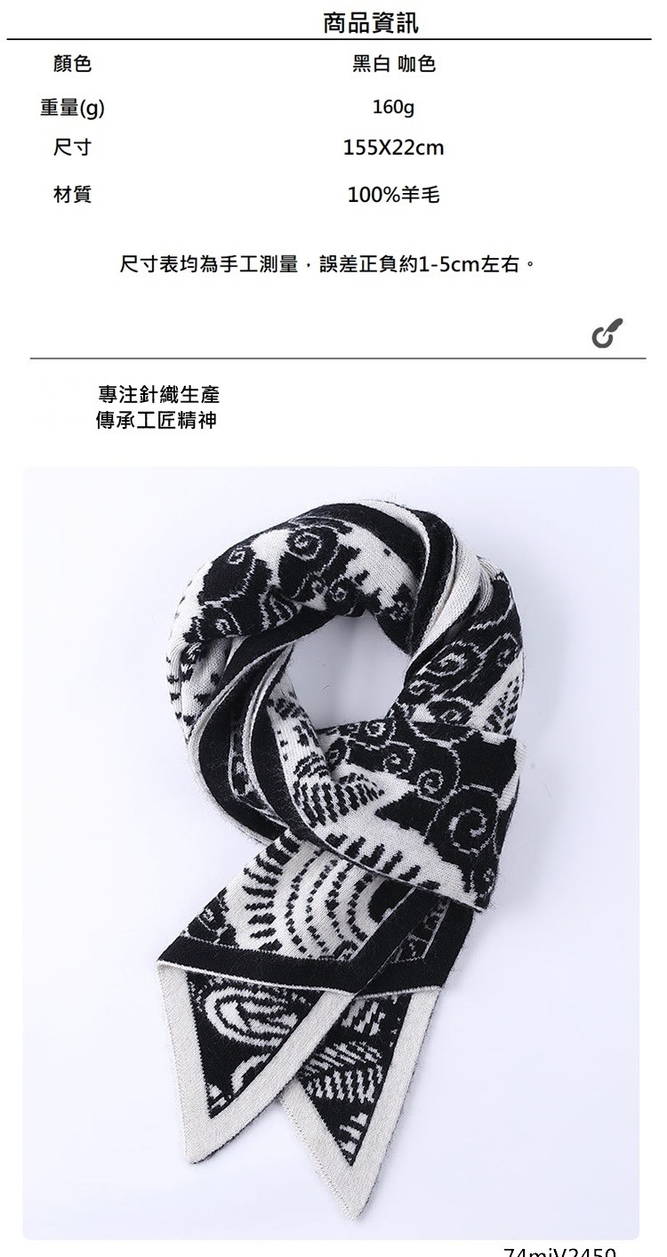 現貨+預購 頂級100%羊毛圍巾圍脖秋冬季加絨厚磅保暖針織圍巾休閒-時尚復古男女配件74mi4