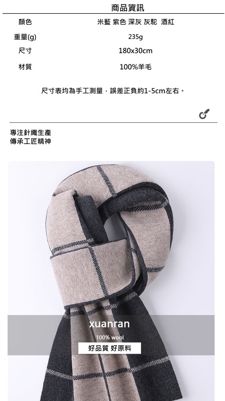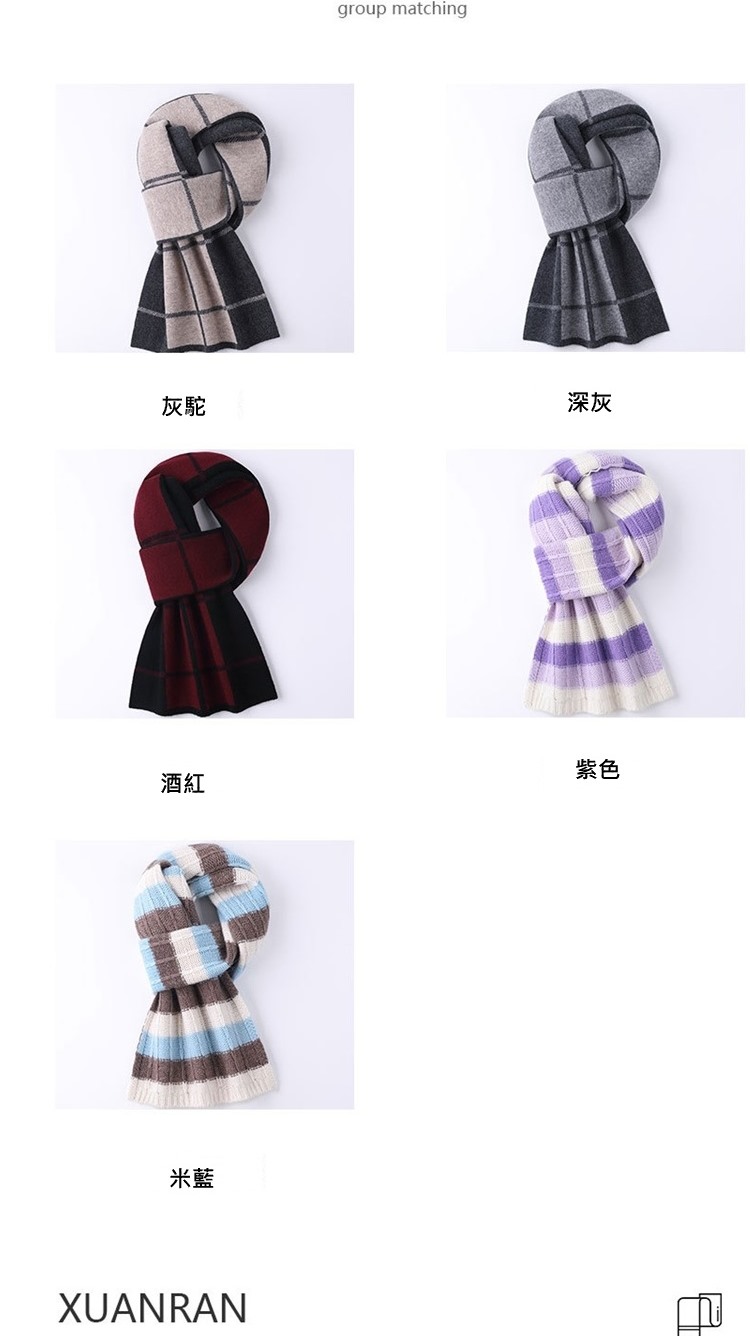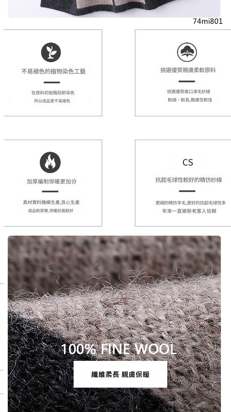 現貨+預購 頂級100%羊毛圍巾圍脖秋冬季加絨厚磅保暖針織圍巾休閒-韓版撞色男女配件74mi2