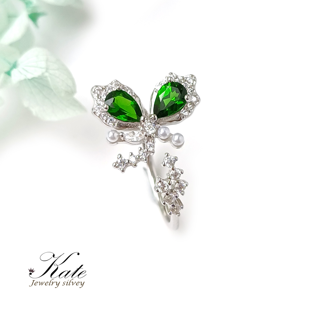 濃郁翠綠的寶石光彩,點綴細鑽,精緻閃亮