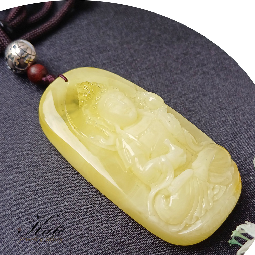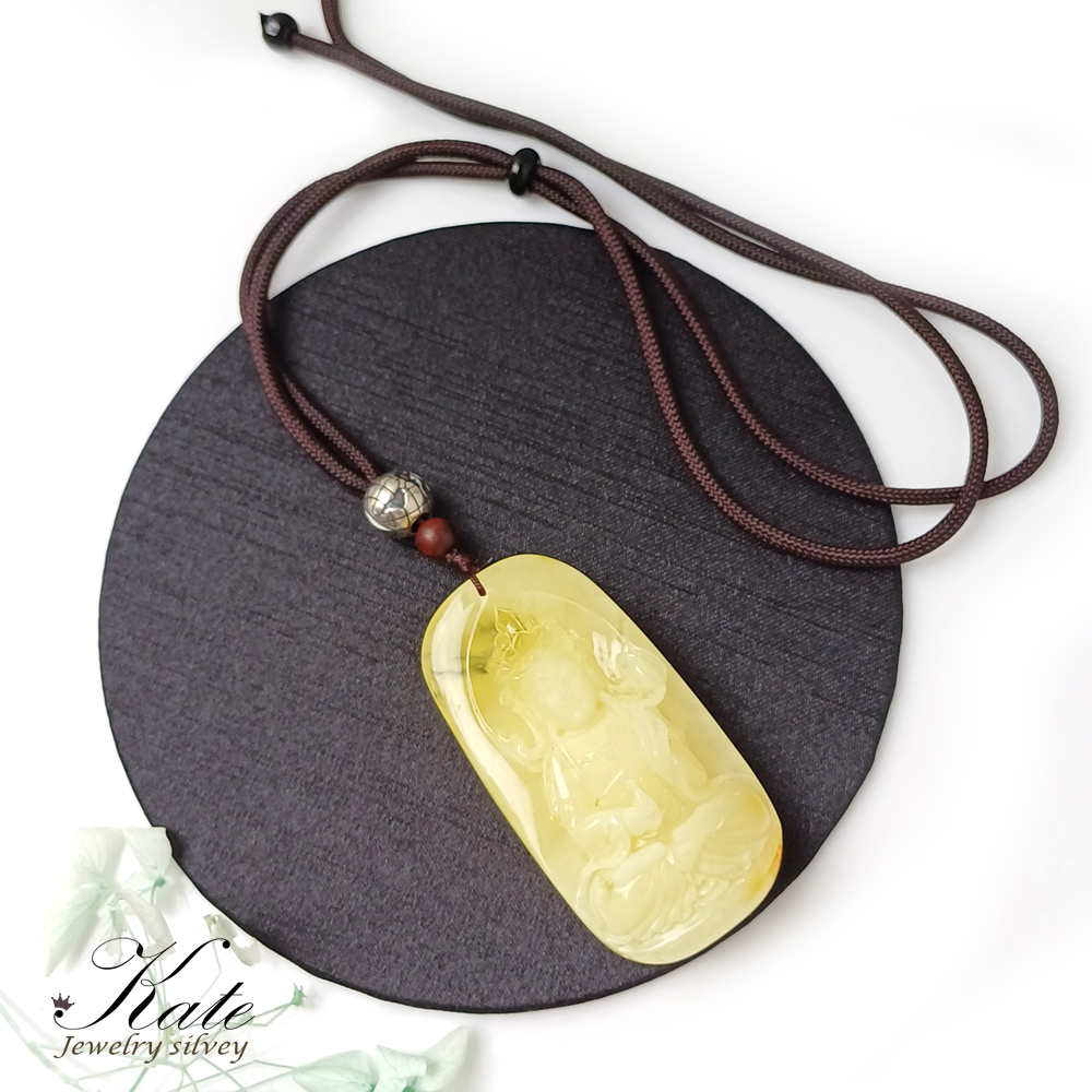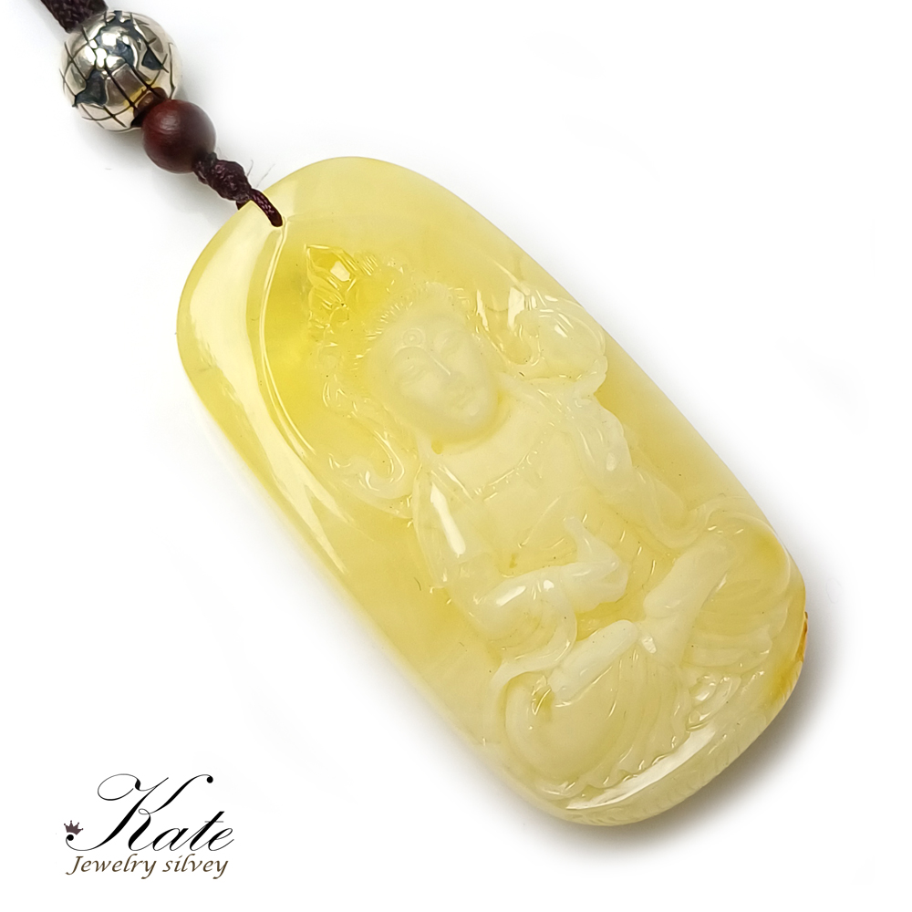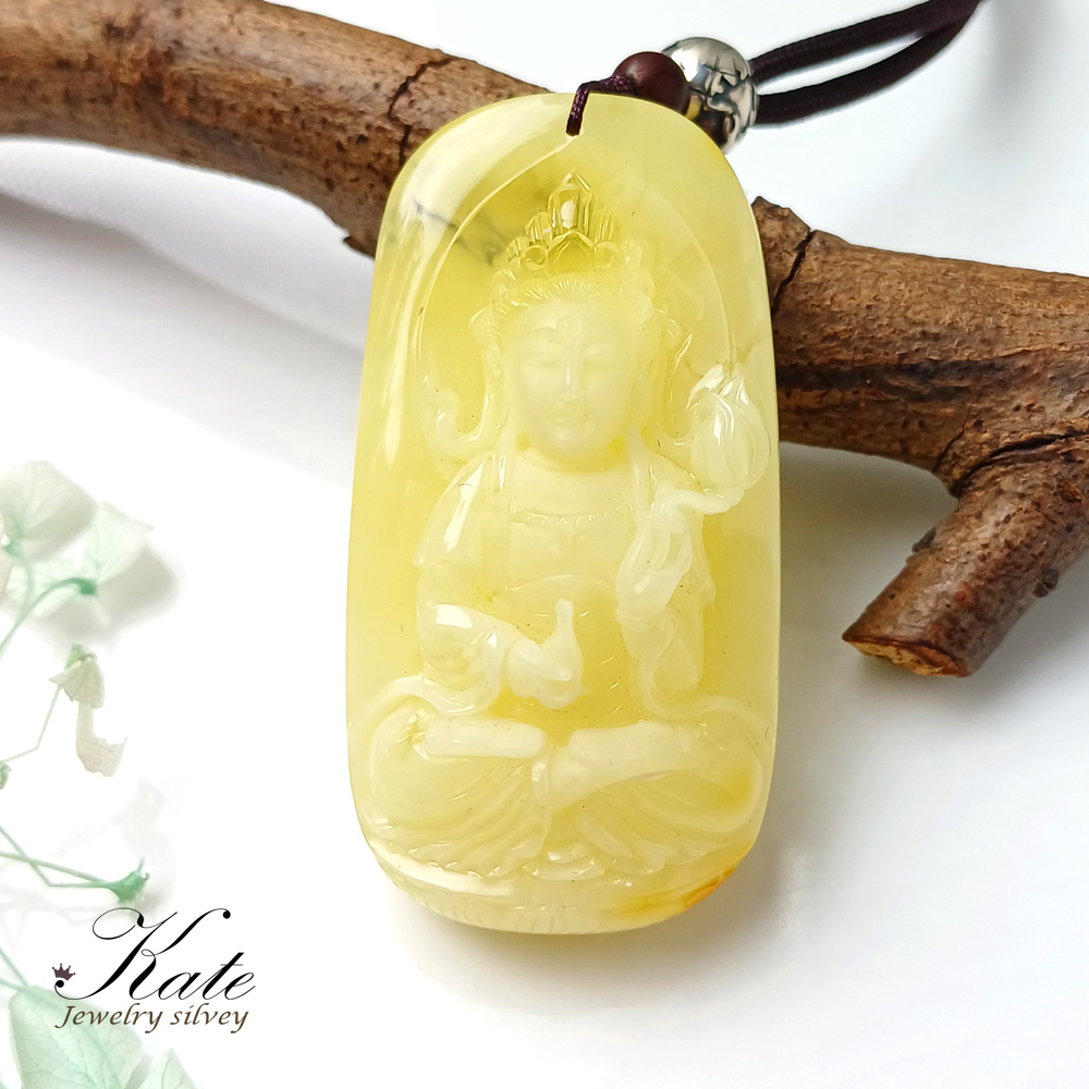 完全是用整塊原礦天然蜜蠟,手工雕刻出一尊寶瓶觀音佛像