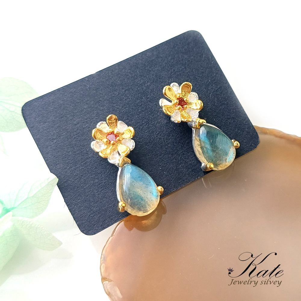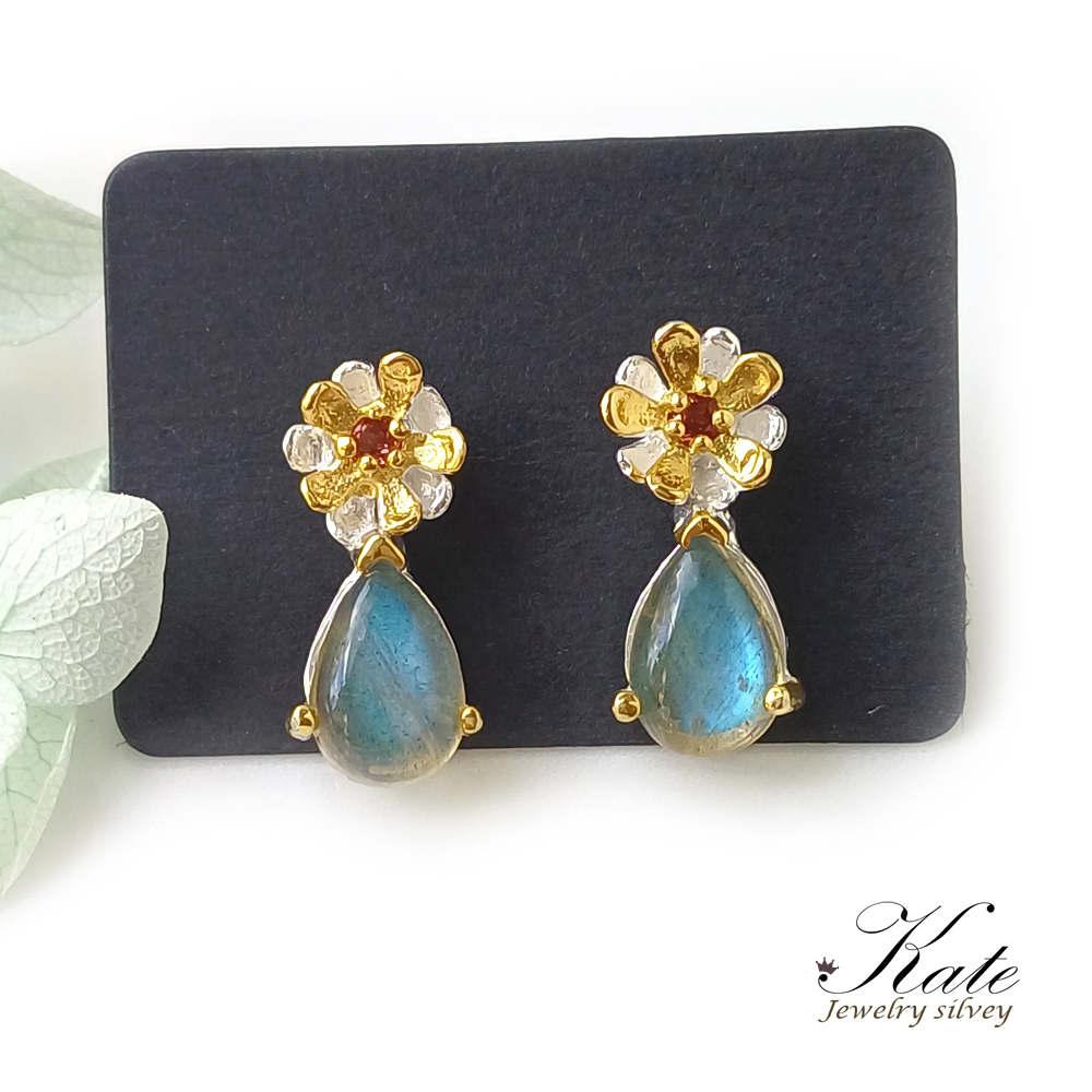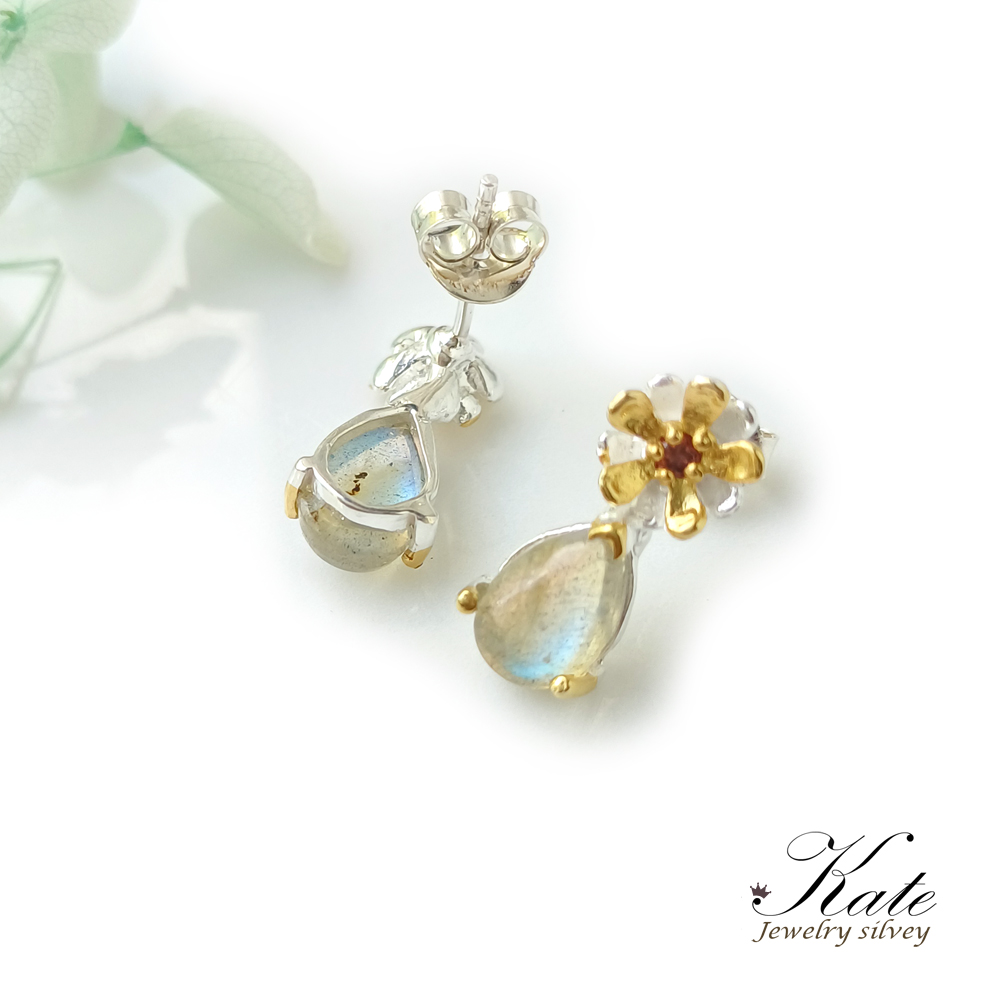 以閃耀的藍光拉長石,搭配天然紅石榴石