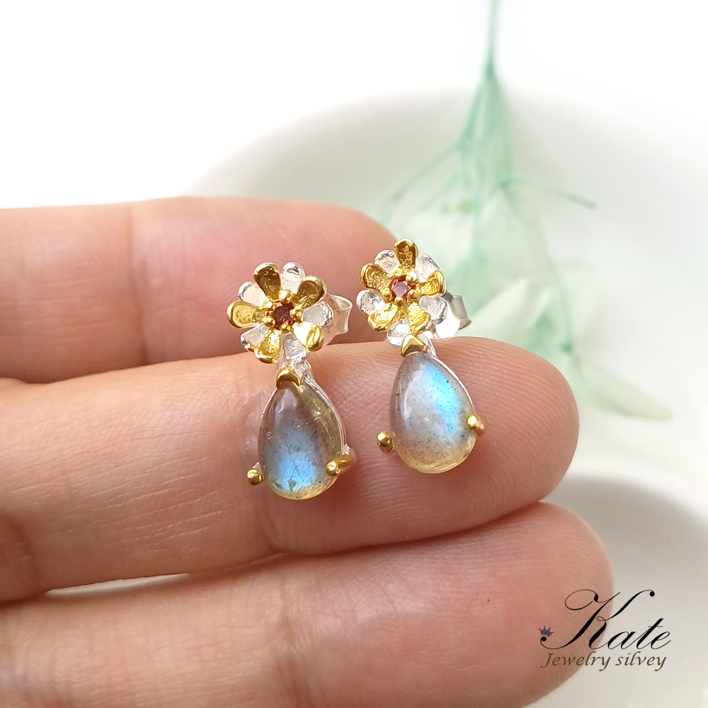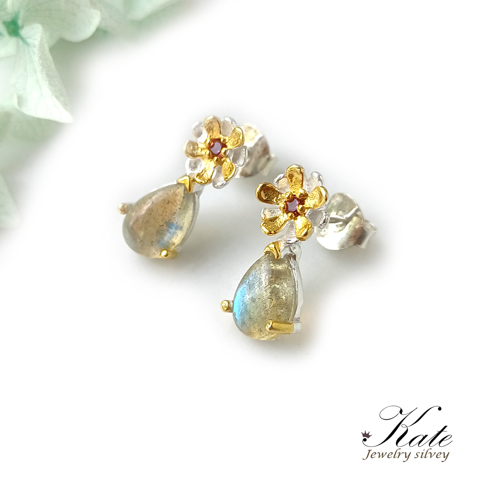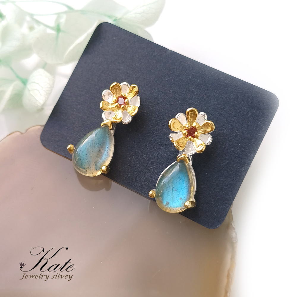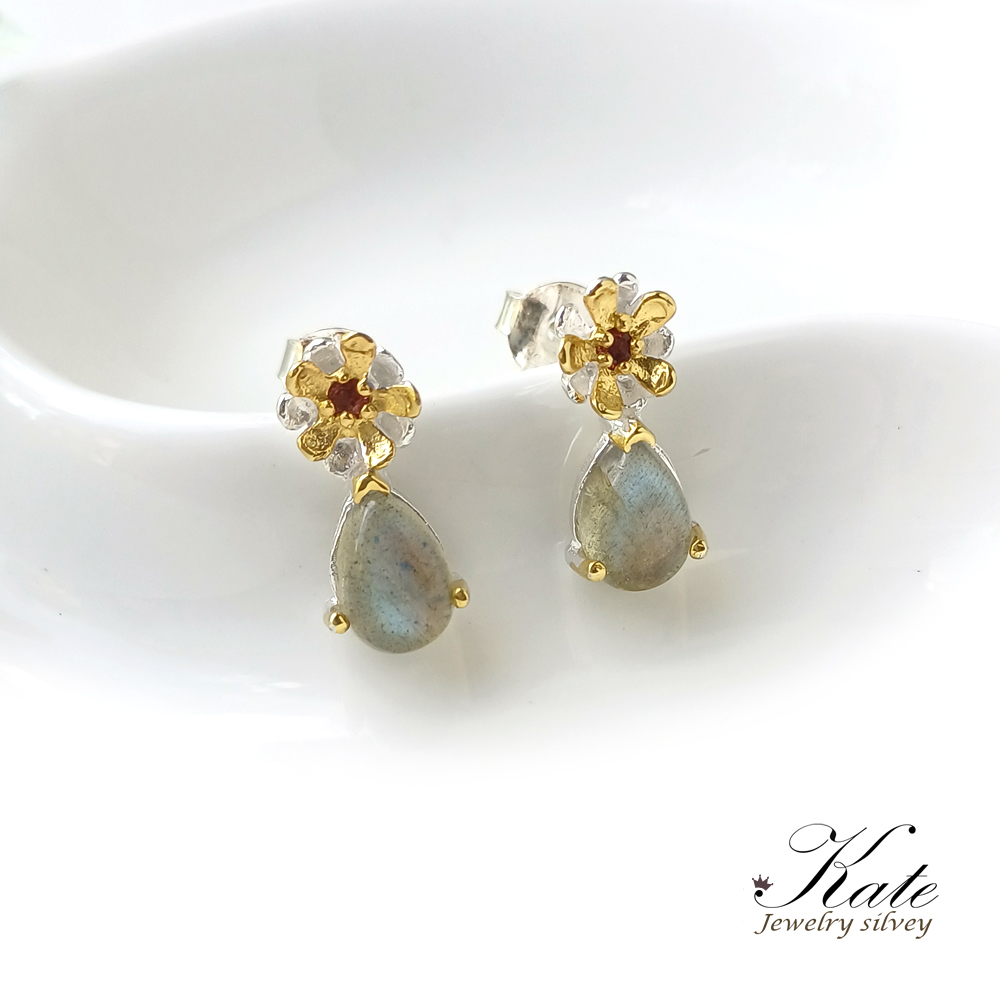 以閃耀的藍光拉長石,搭配天然紅石榴石