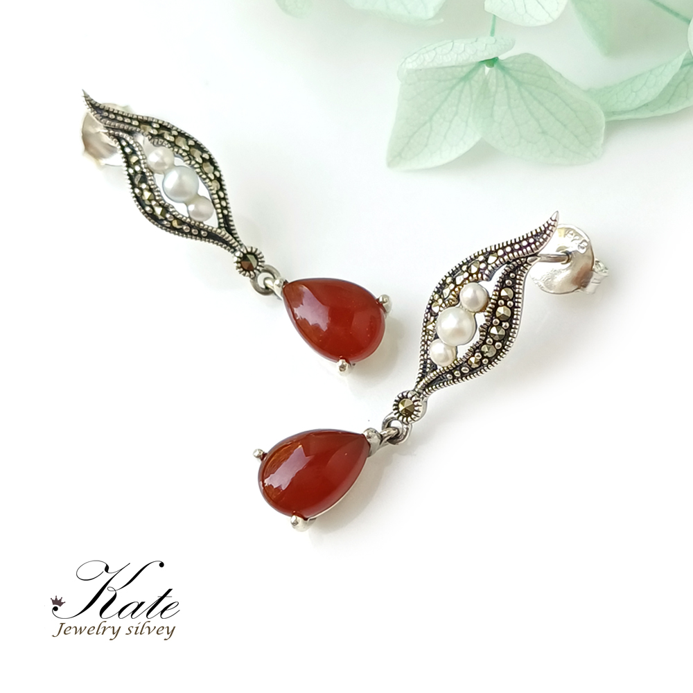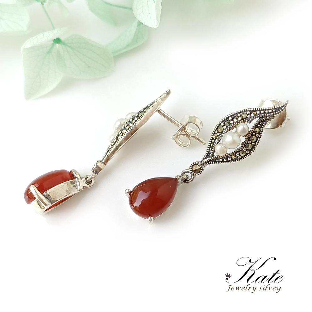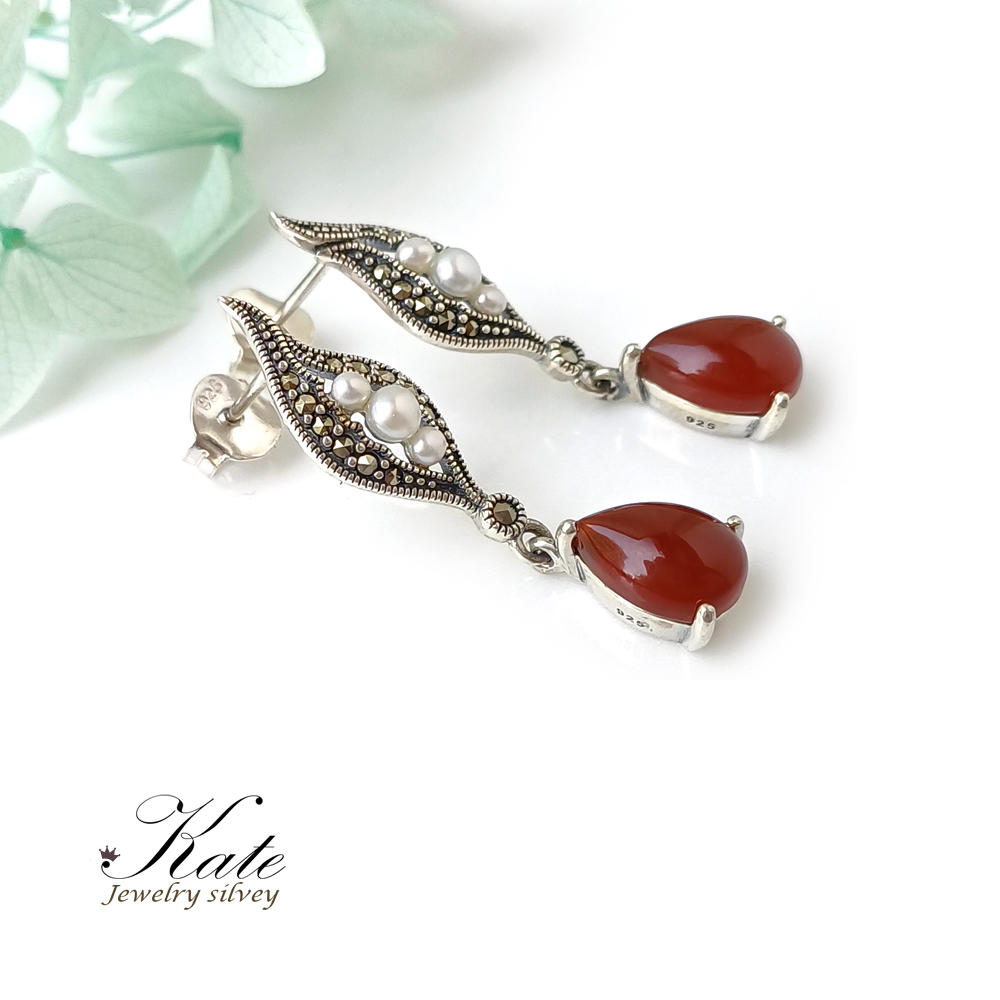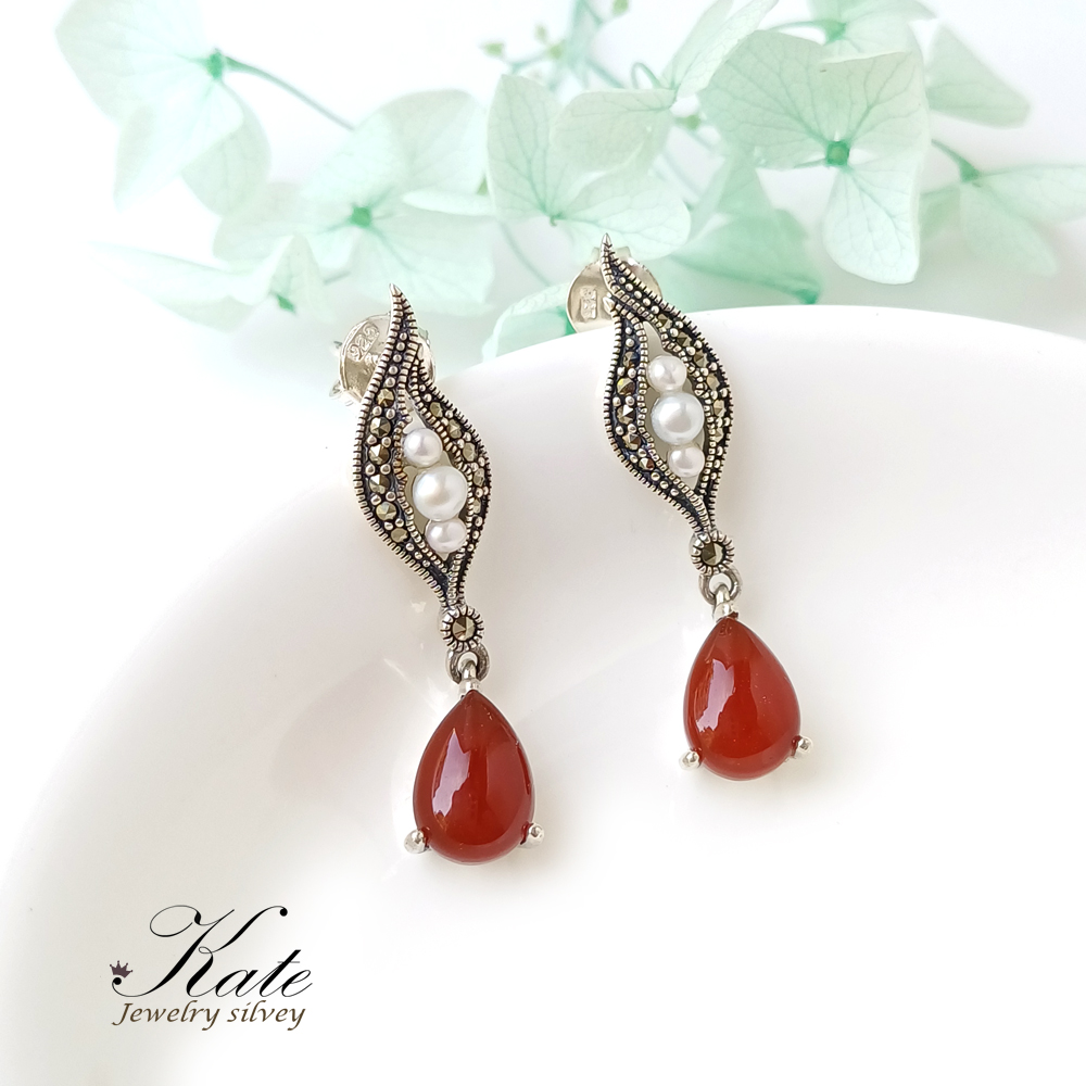 水滴型紅瑪瑙,線條柔美,做工細緻