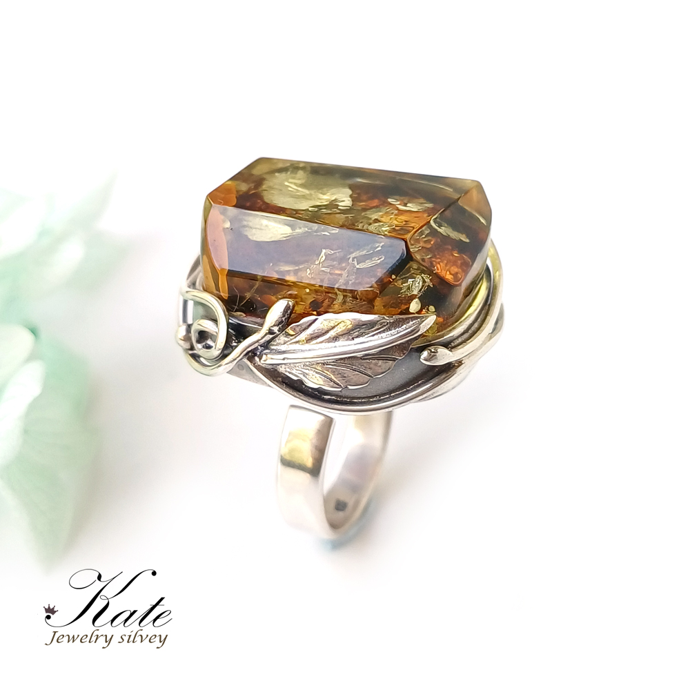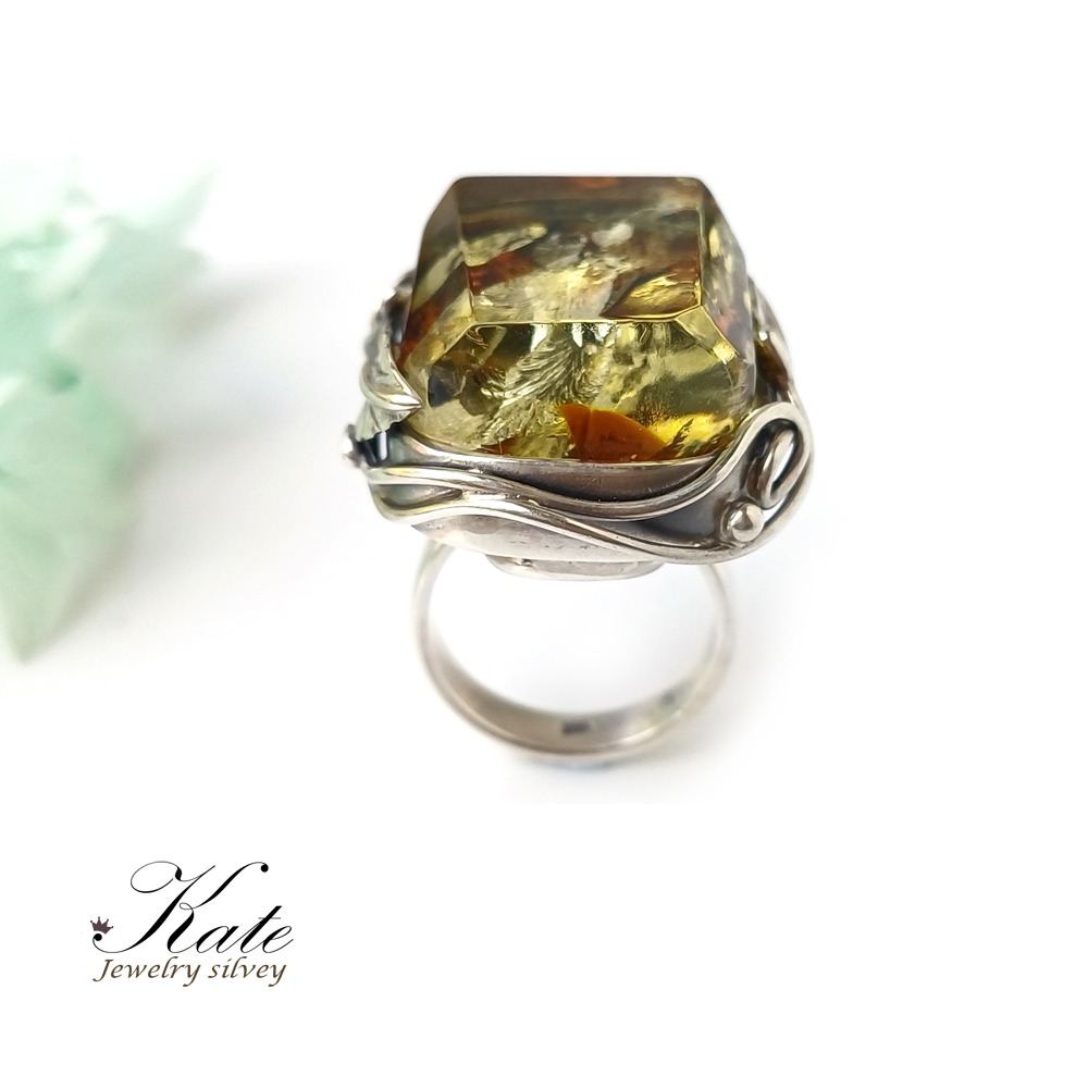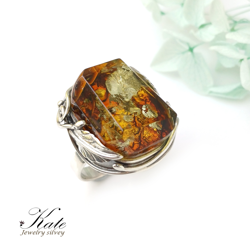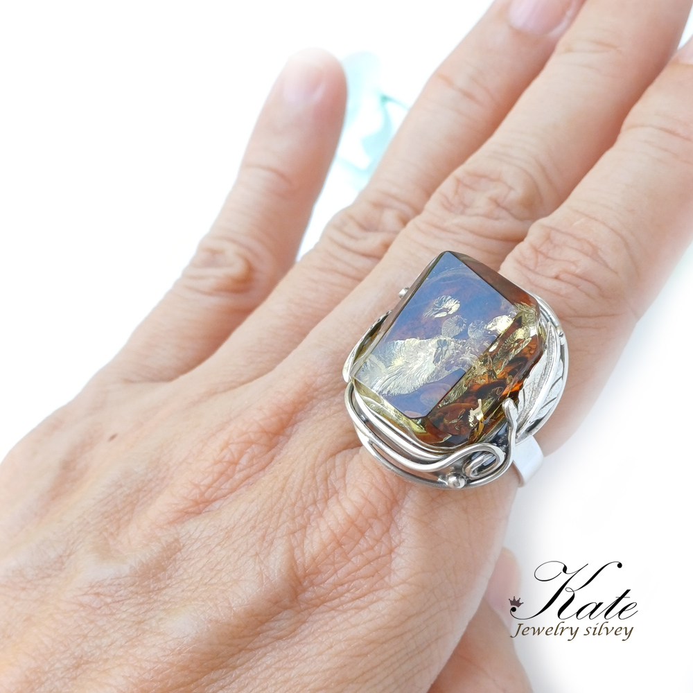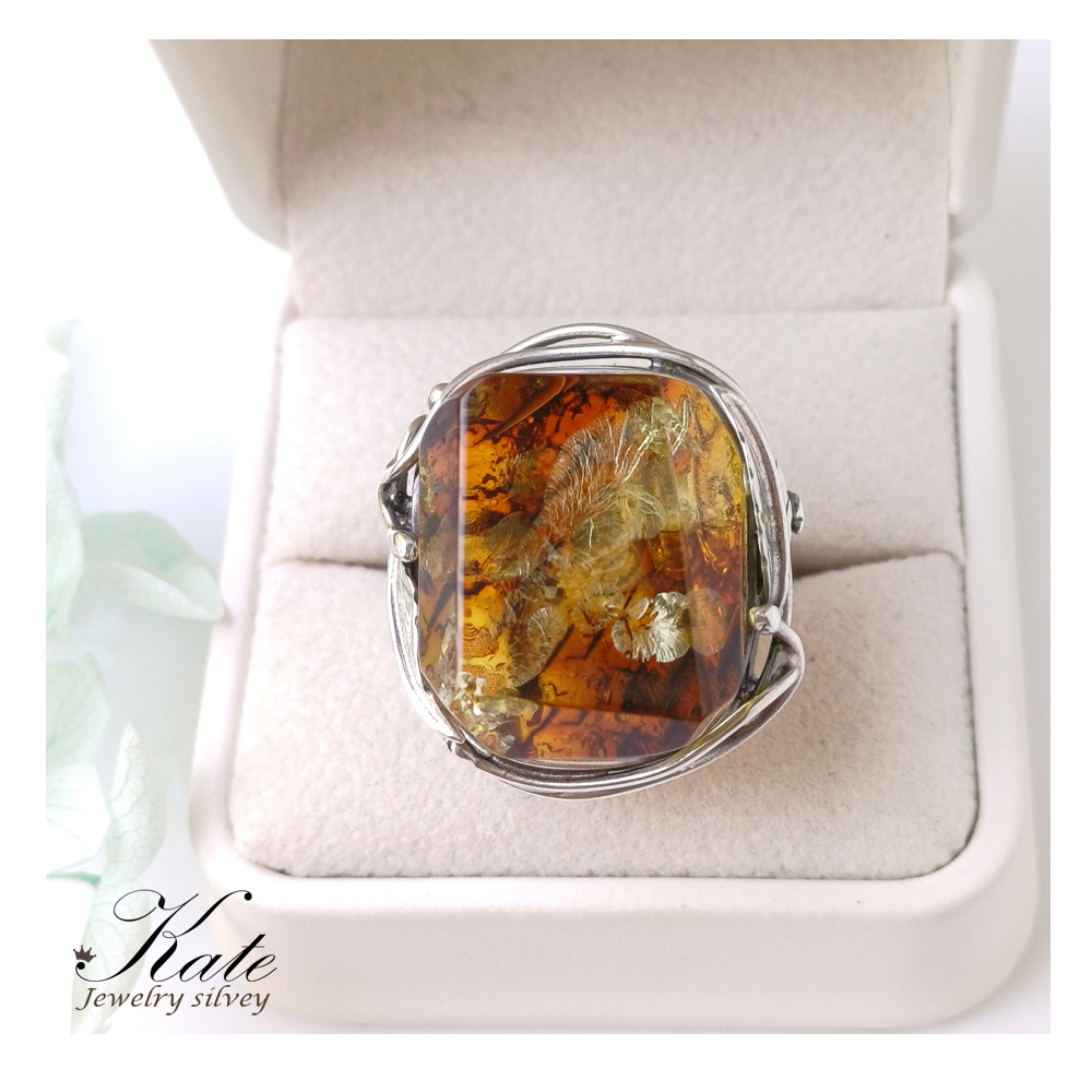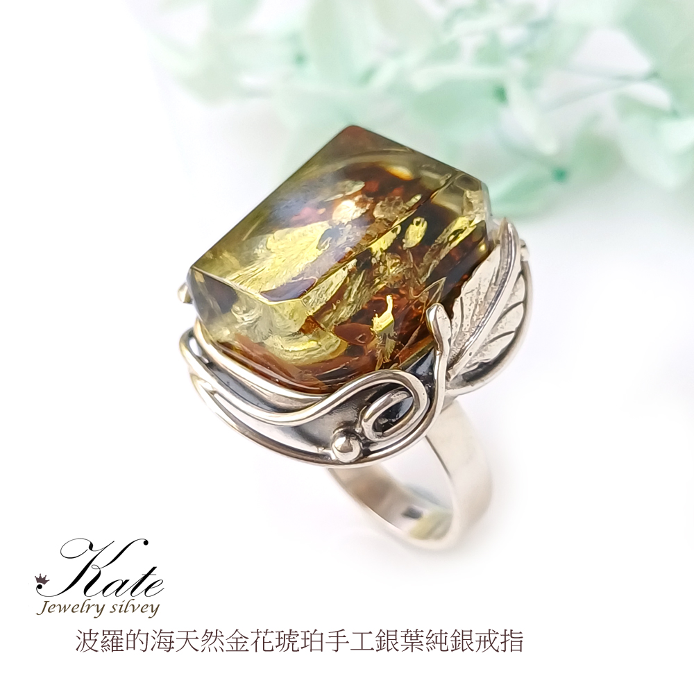 這顆爆花金花珀大小約2.3*1.9公分,珀花及內含物豐富,層次多變瑰麗